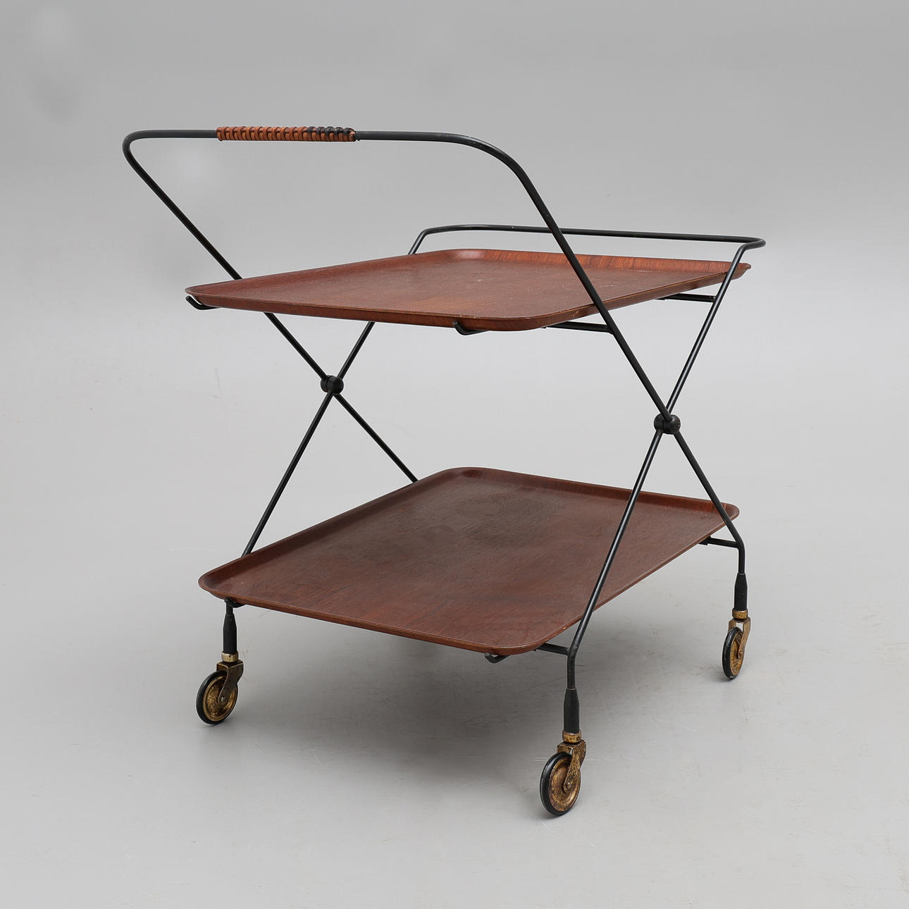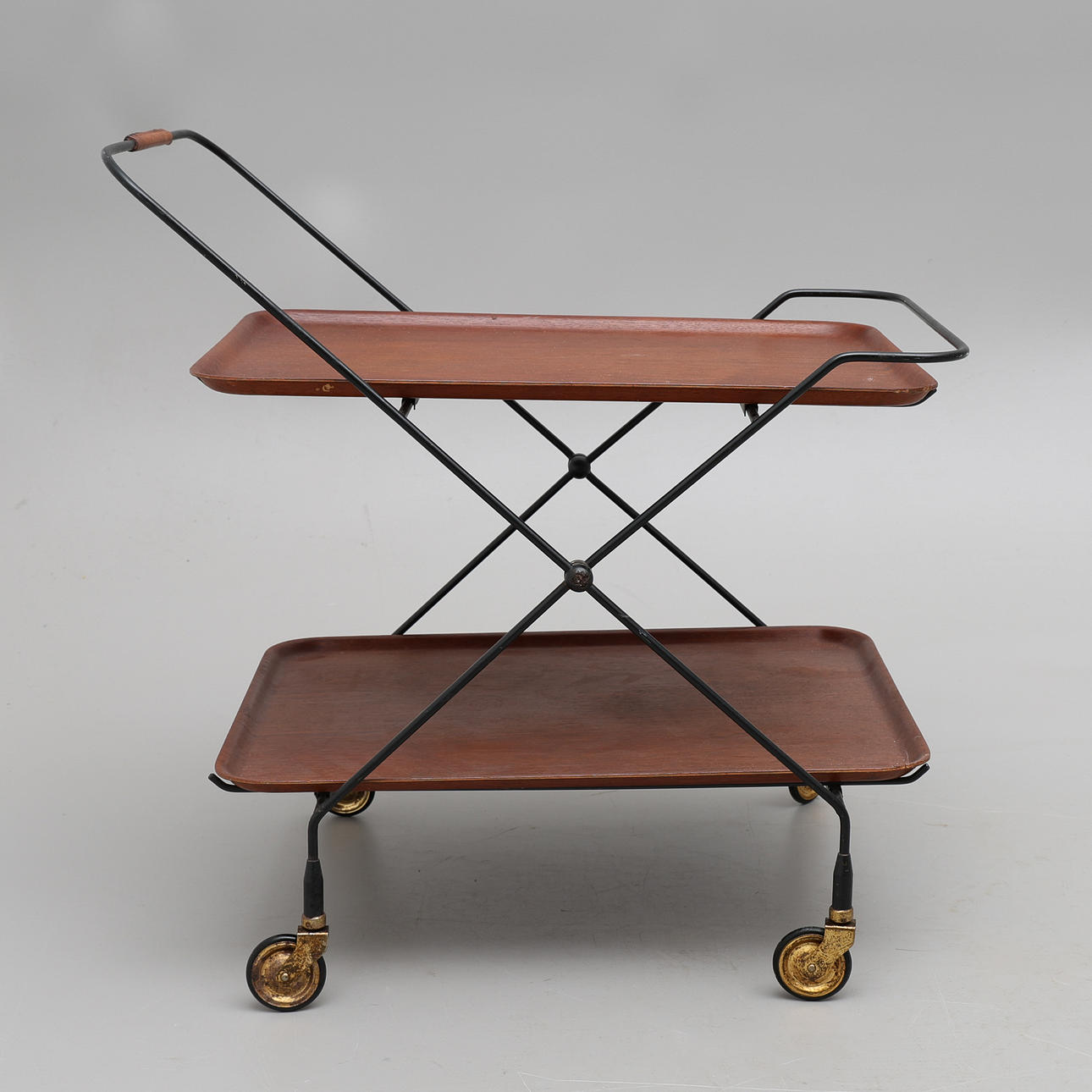 3292047. SERVING TROLLEY, TEAK TRAYS, 1950S/60S.