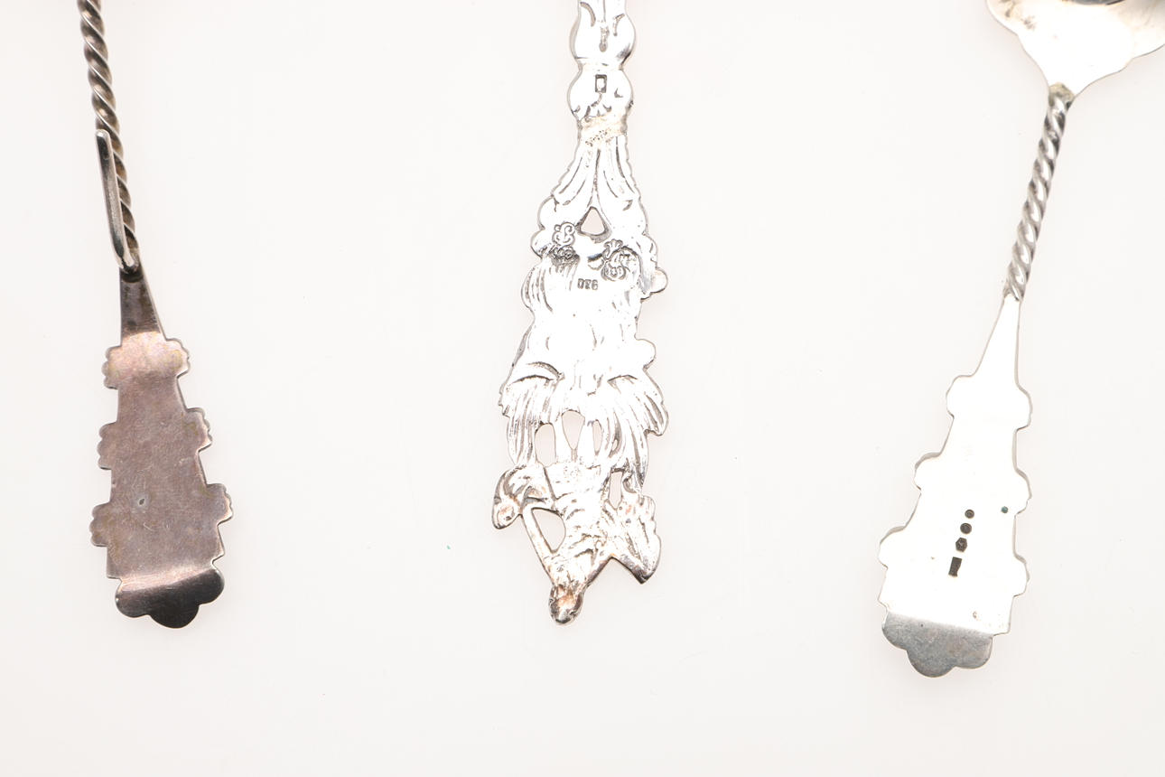 including a sifter spoon and a matching spoon & scoop with shaped & engraved terminals, mixed makers & dates; the sifter 6.25" (16cm) long; 3.1ozt (3).