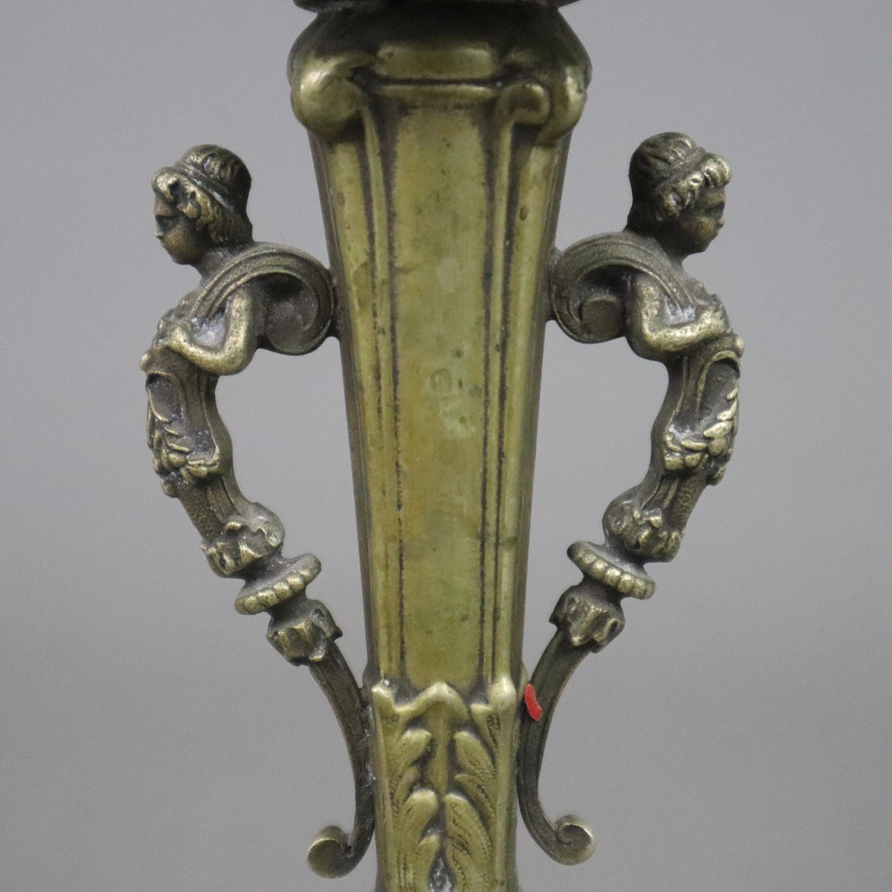 Godroned stand on four paw feet, baluster shaft with two figurative handles, teardrop bowl with pierced candle holder, h. ca. 22.5 cm.
