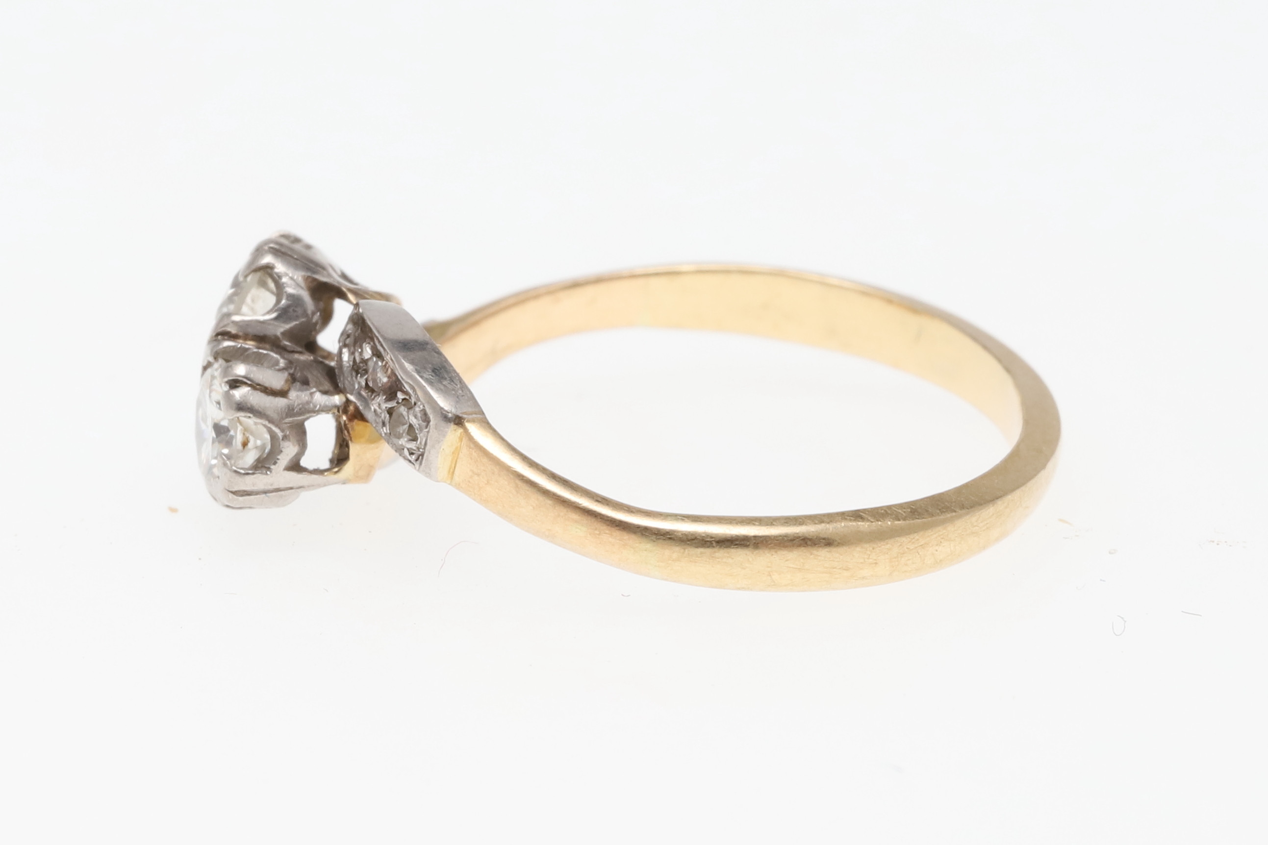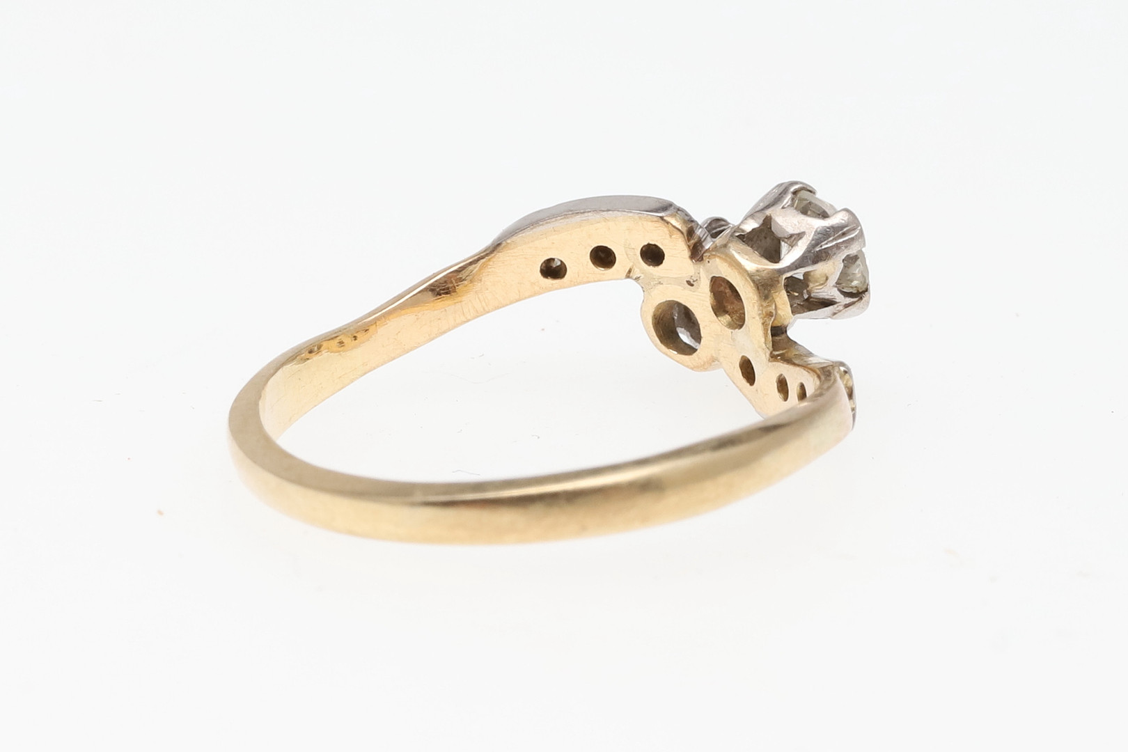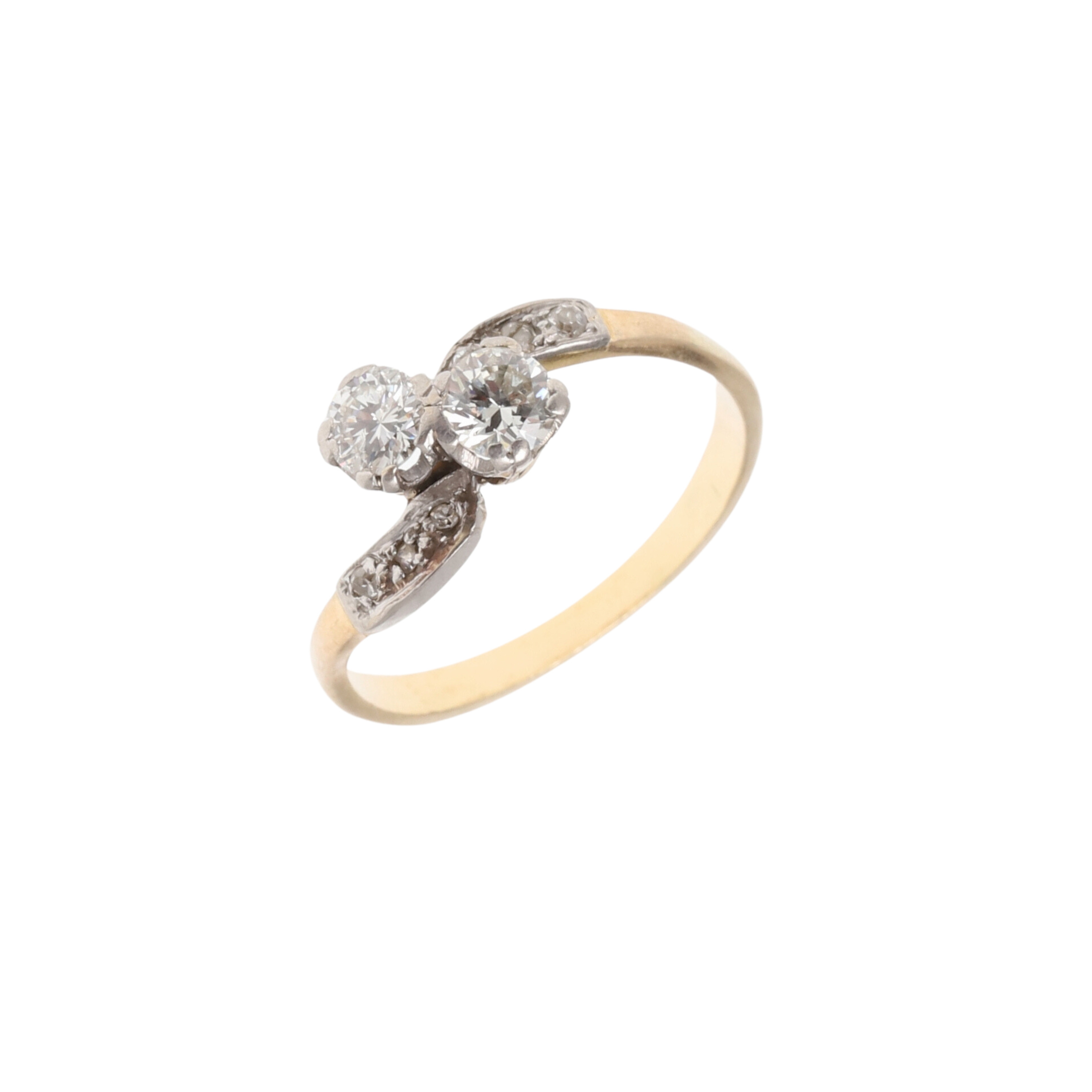3293059. A DIAMOND TWO STONE CROSS-OVER RING.