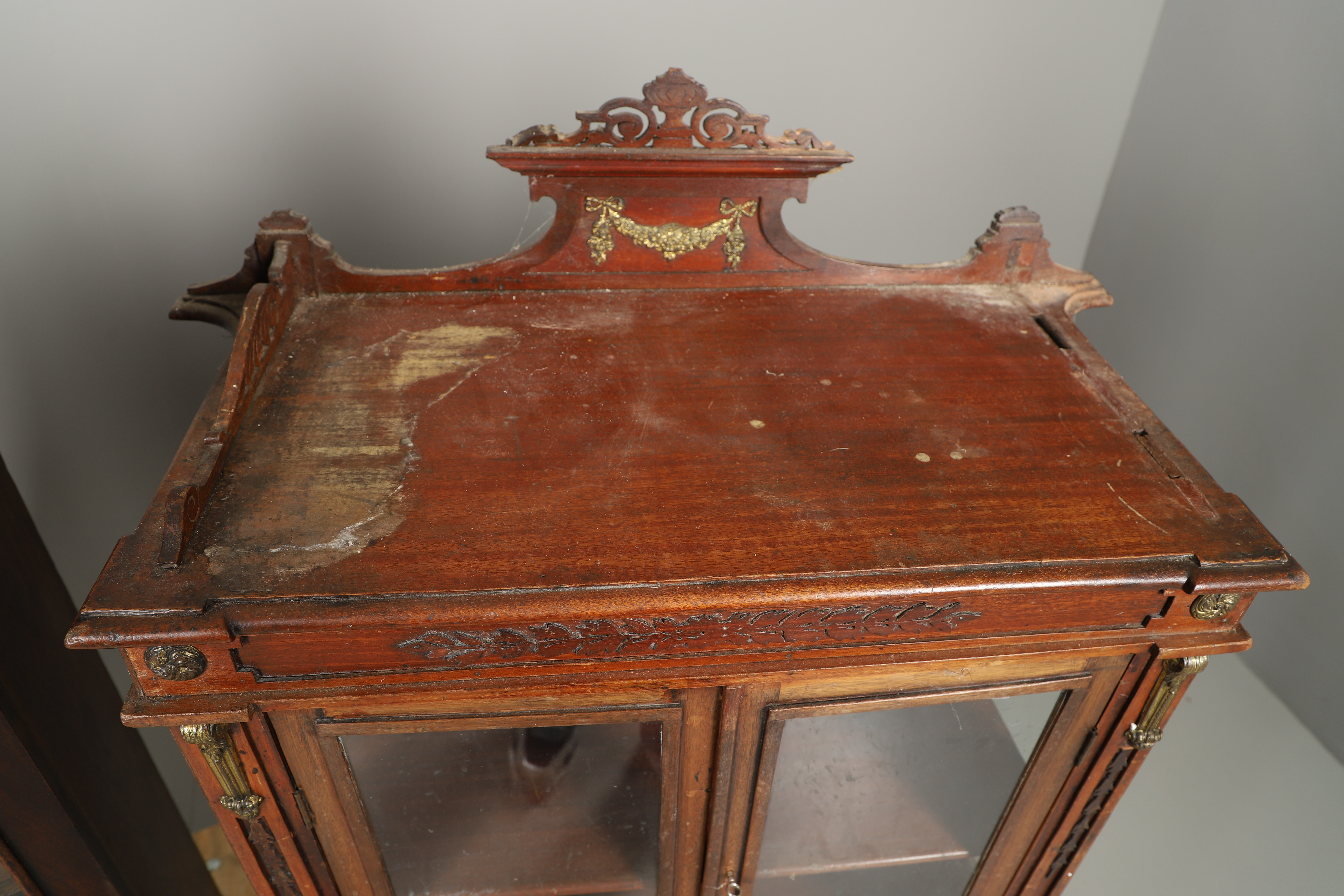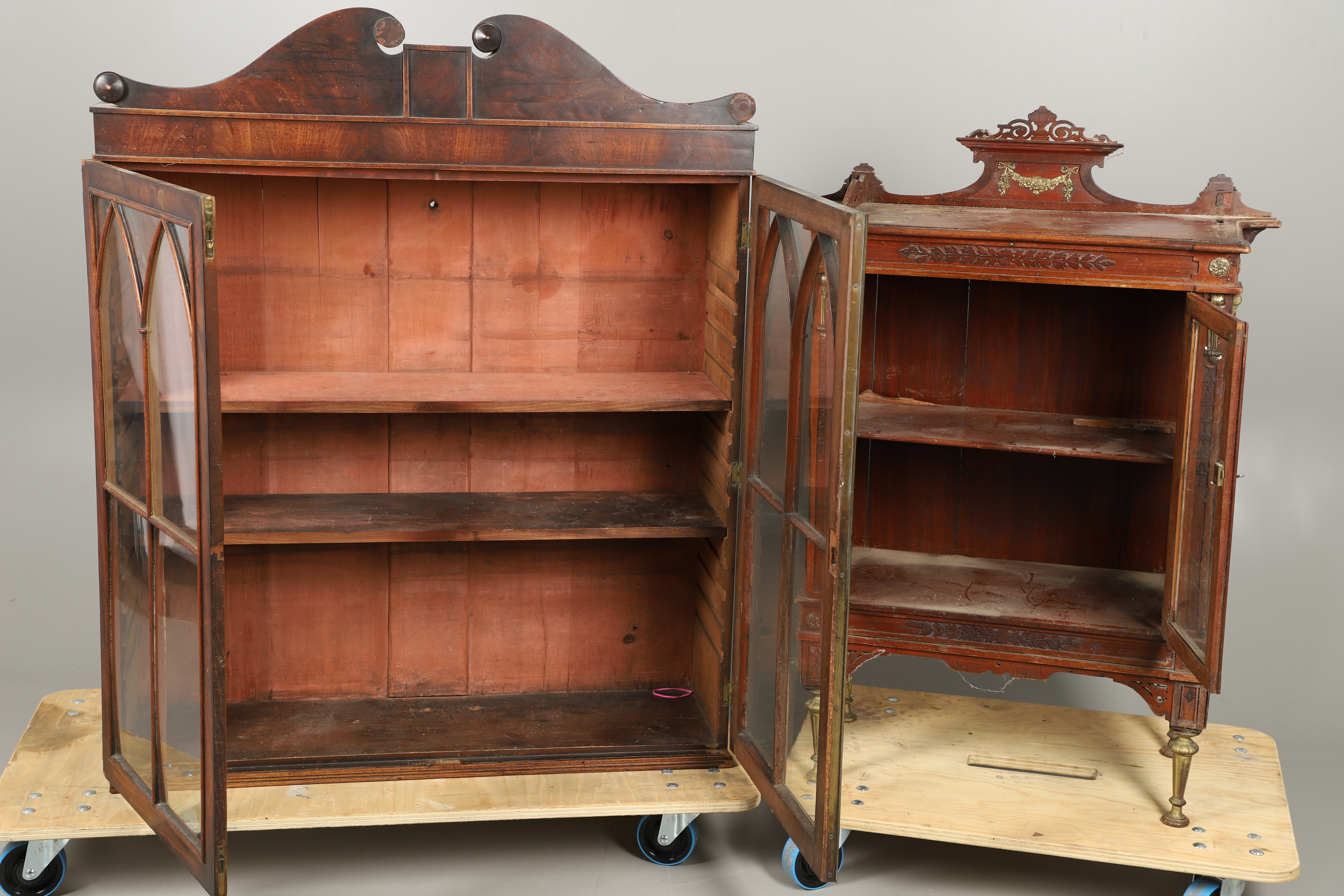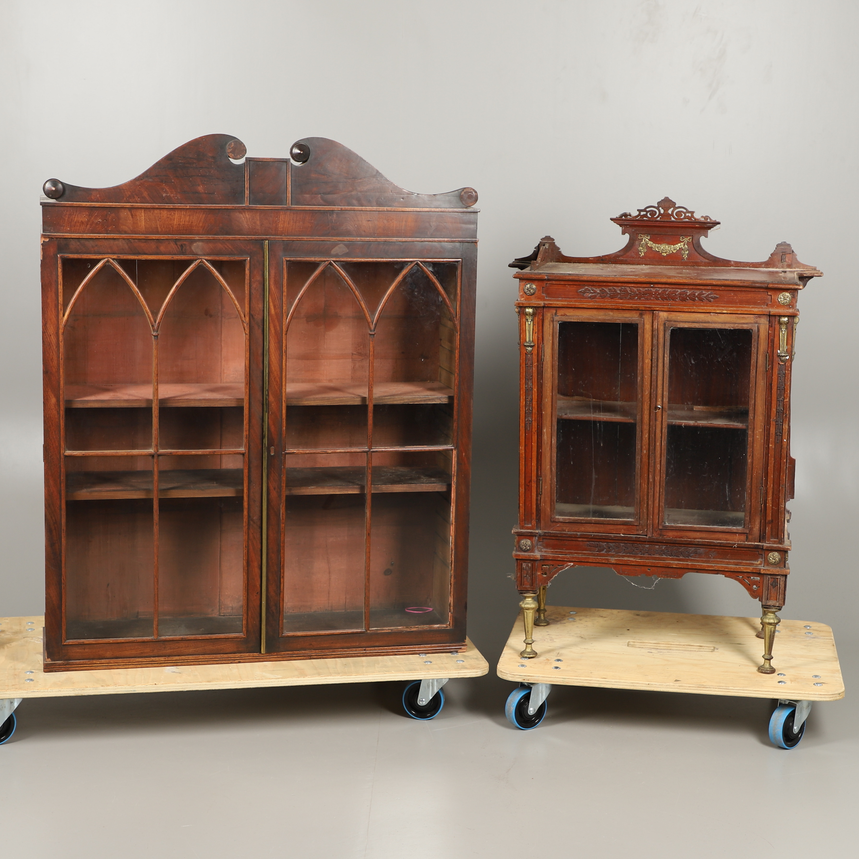 3293433. SMALL ANTIQUE DISPLAY CABINET & ANOTHER BOOKCASE.