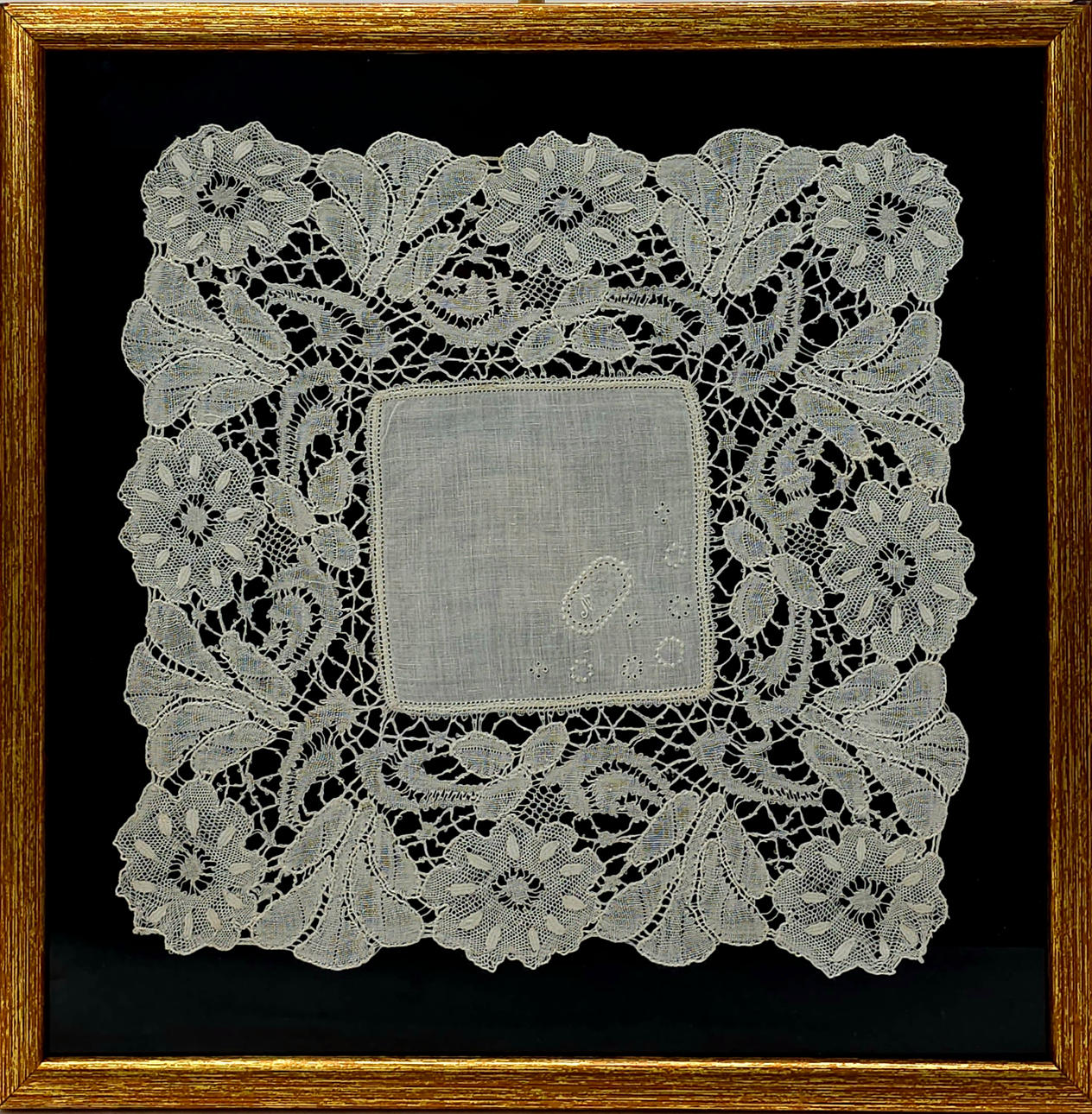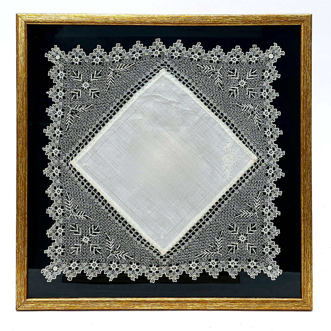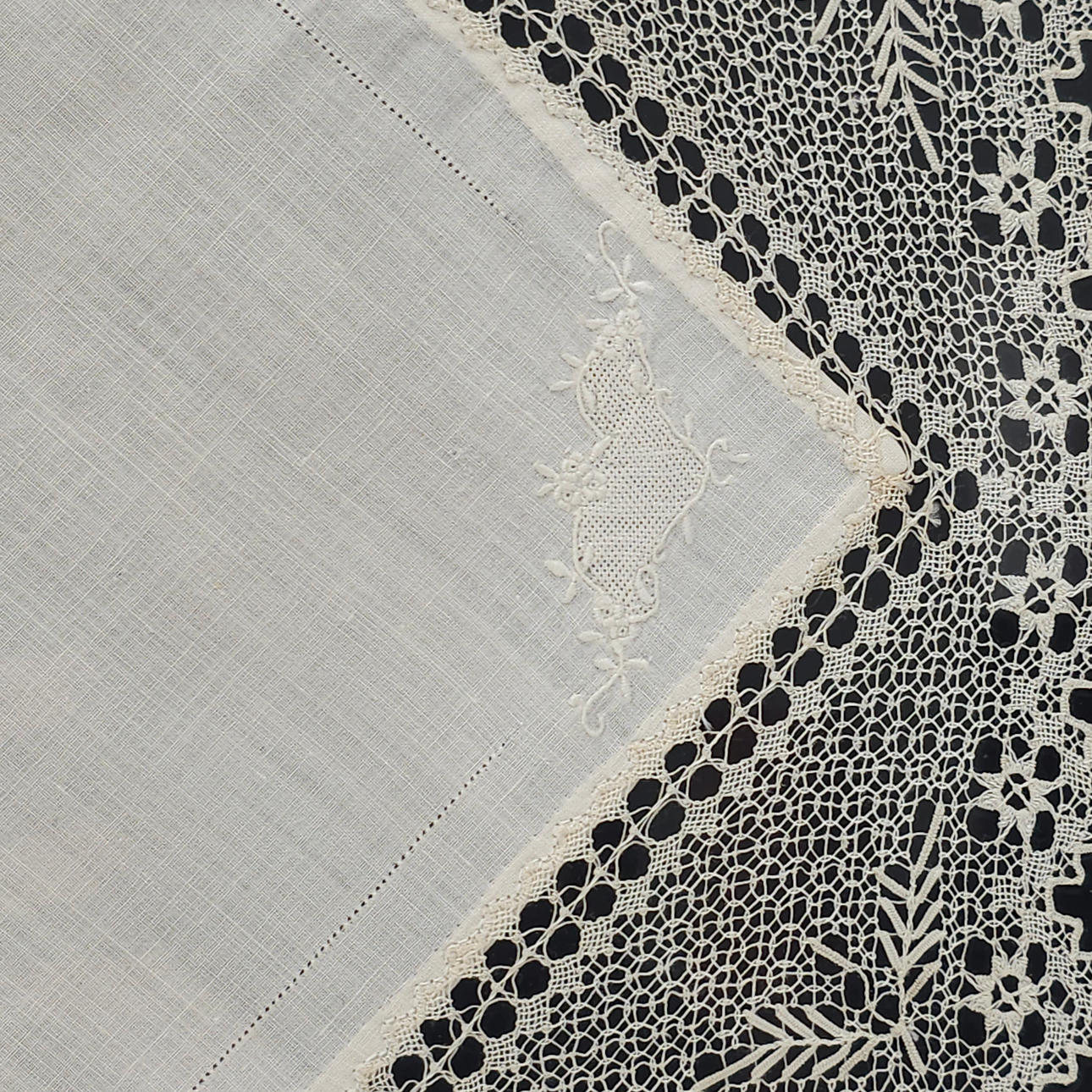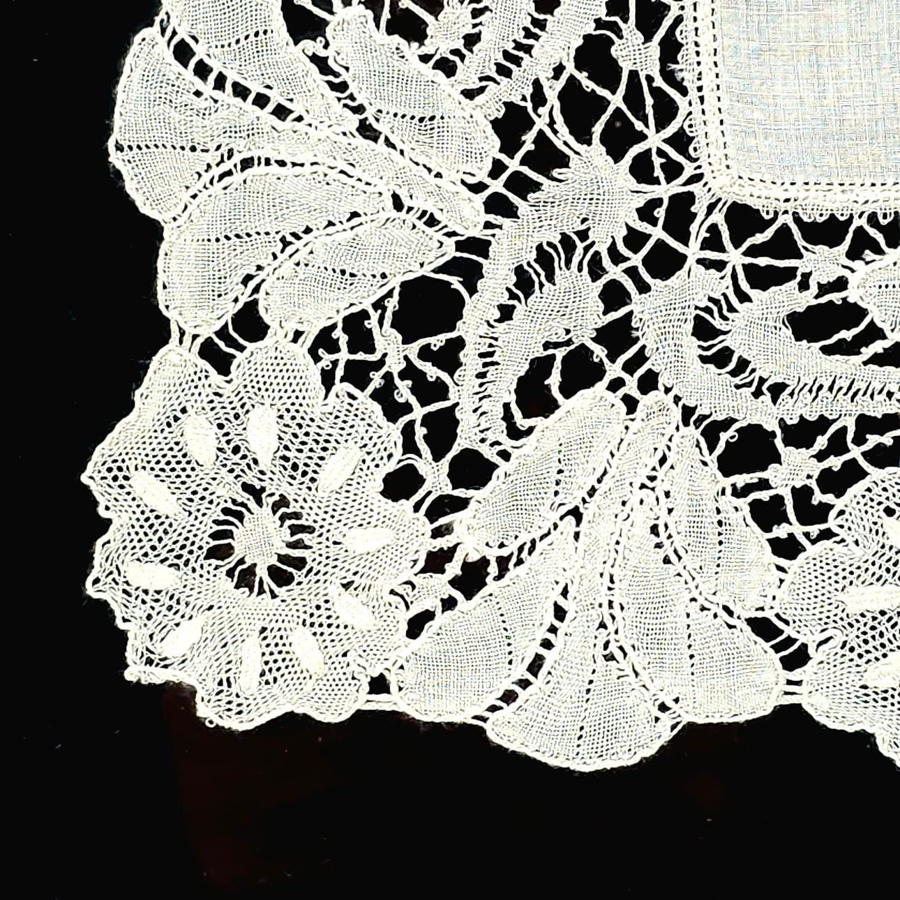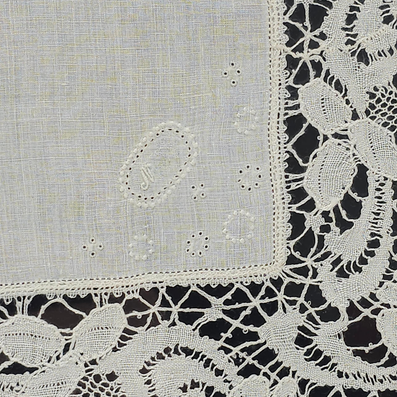 TWO COTTON HANDKERCHIEFS. FRAMED CROCHET TECHNIQUE.
