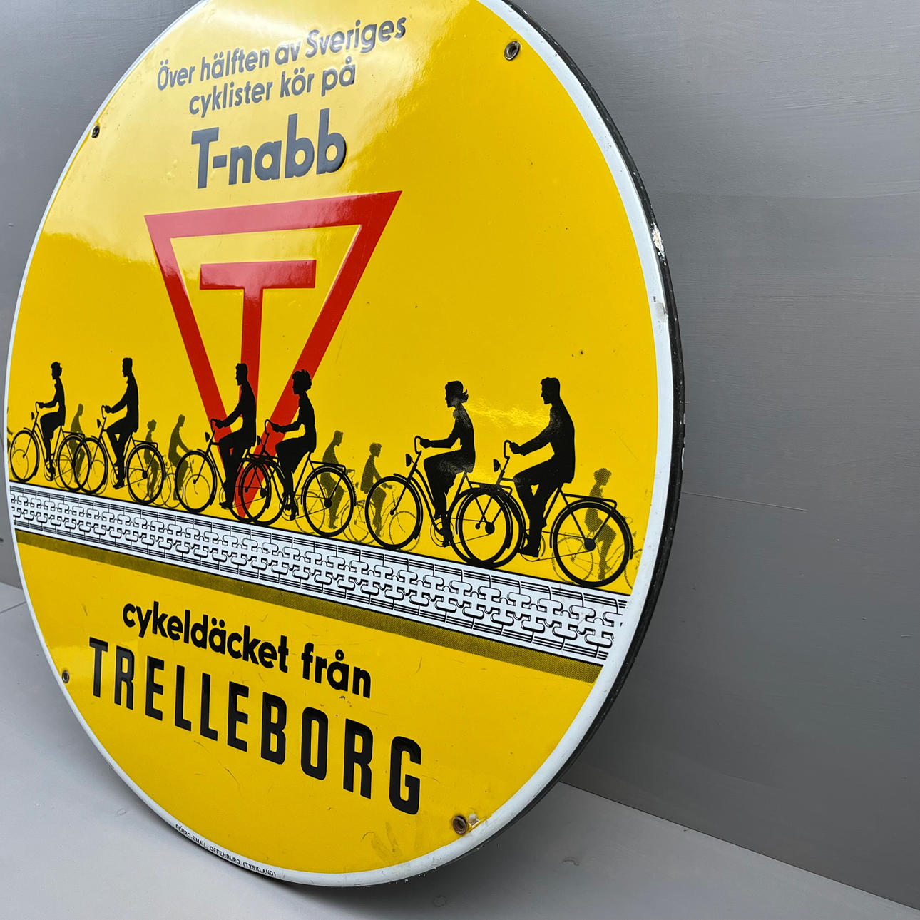 3299208. TRELLEBORG - T-nabb, enamel sign, 1930s.