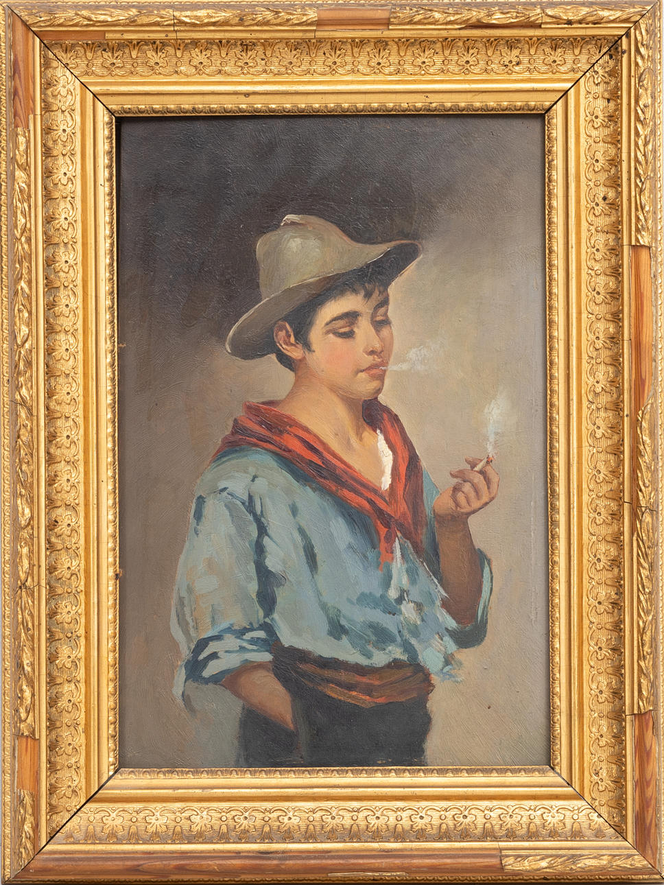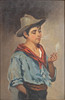 Genre motif of smoking southern boy in hat.