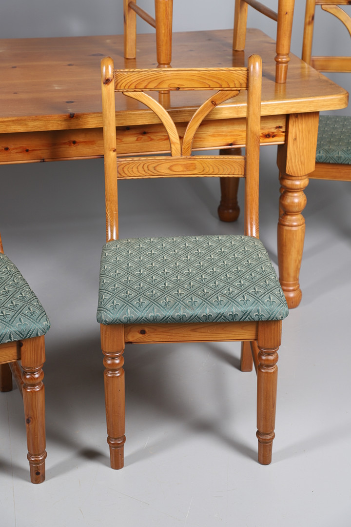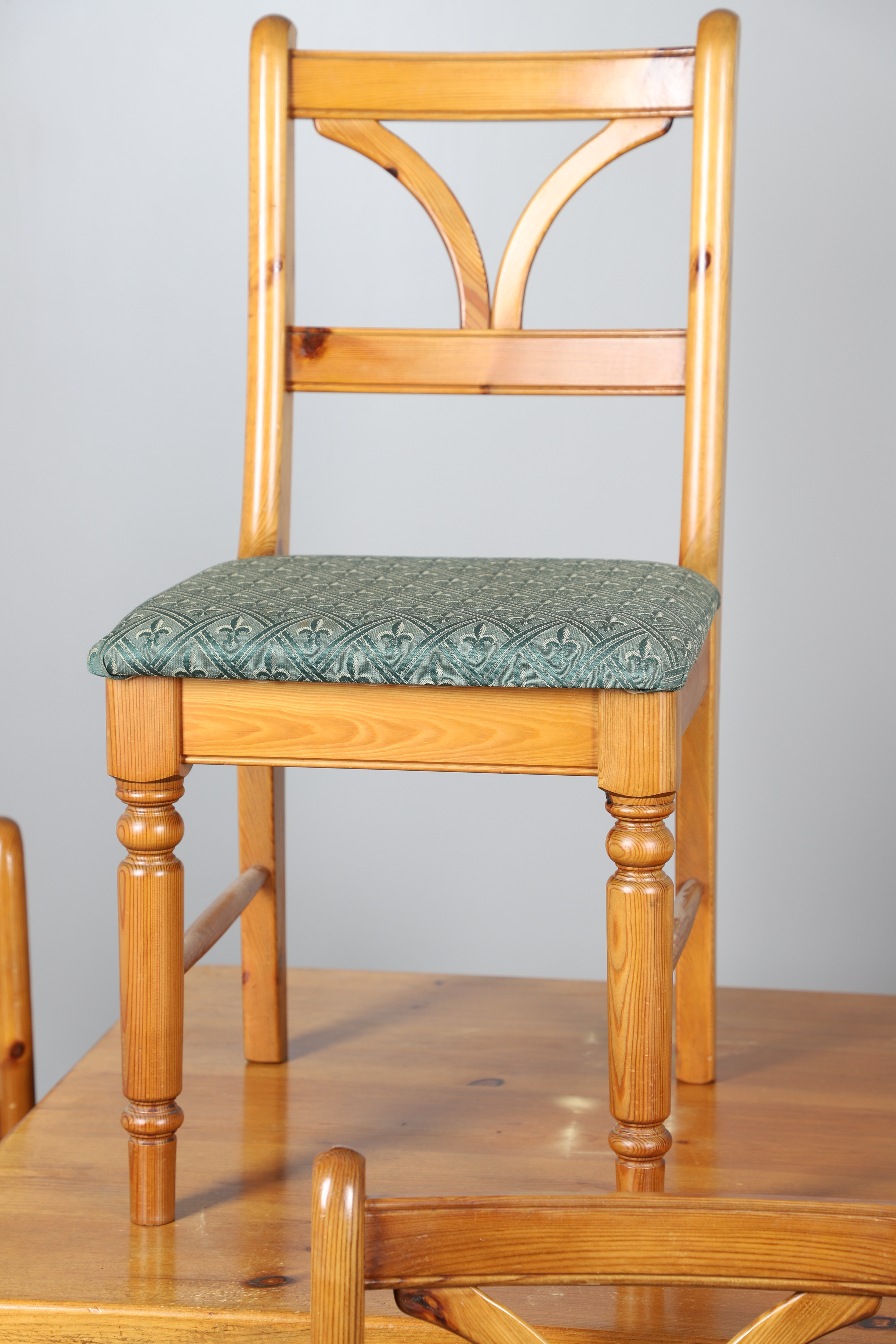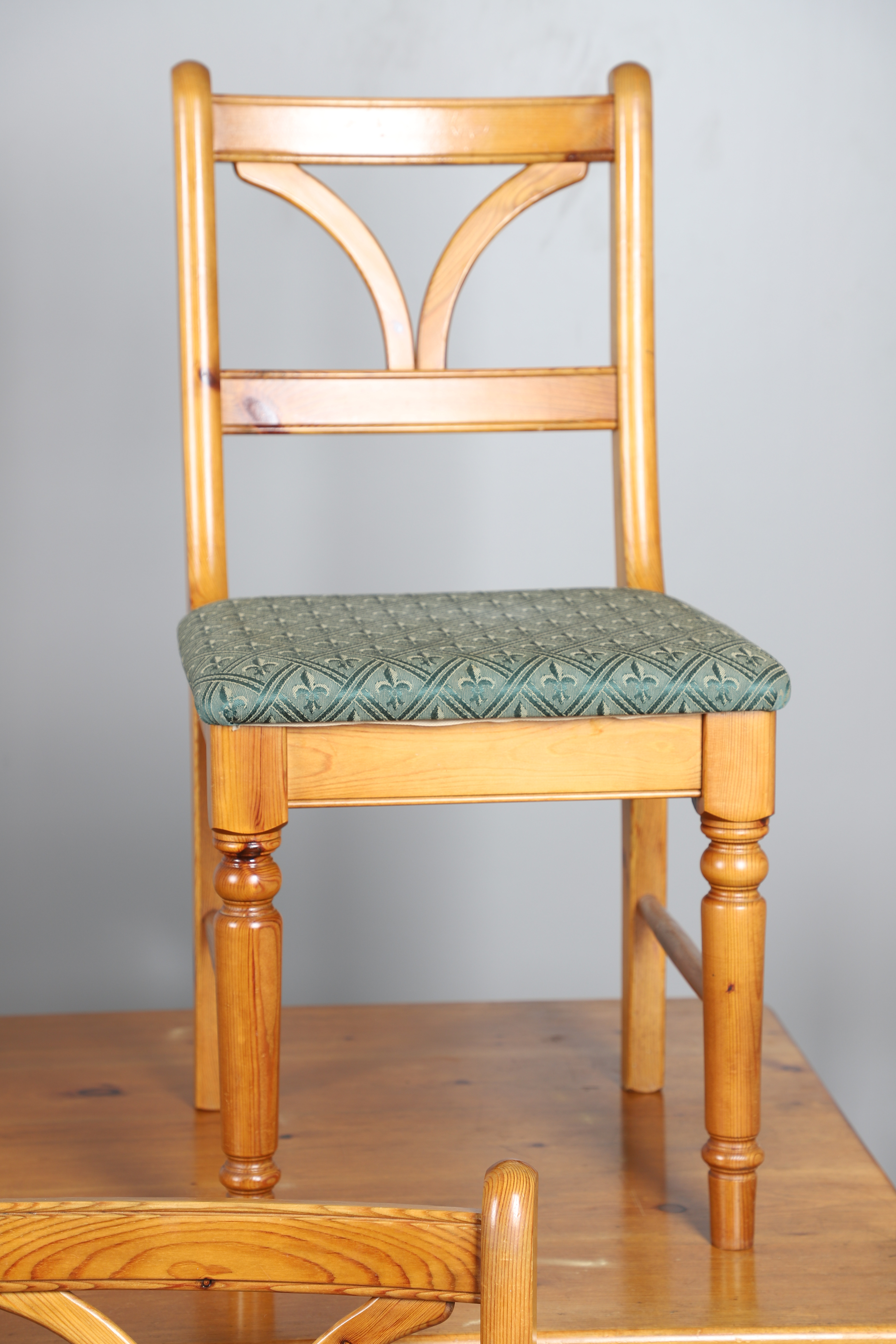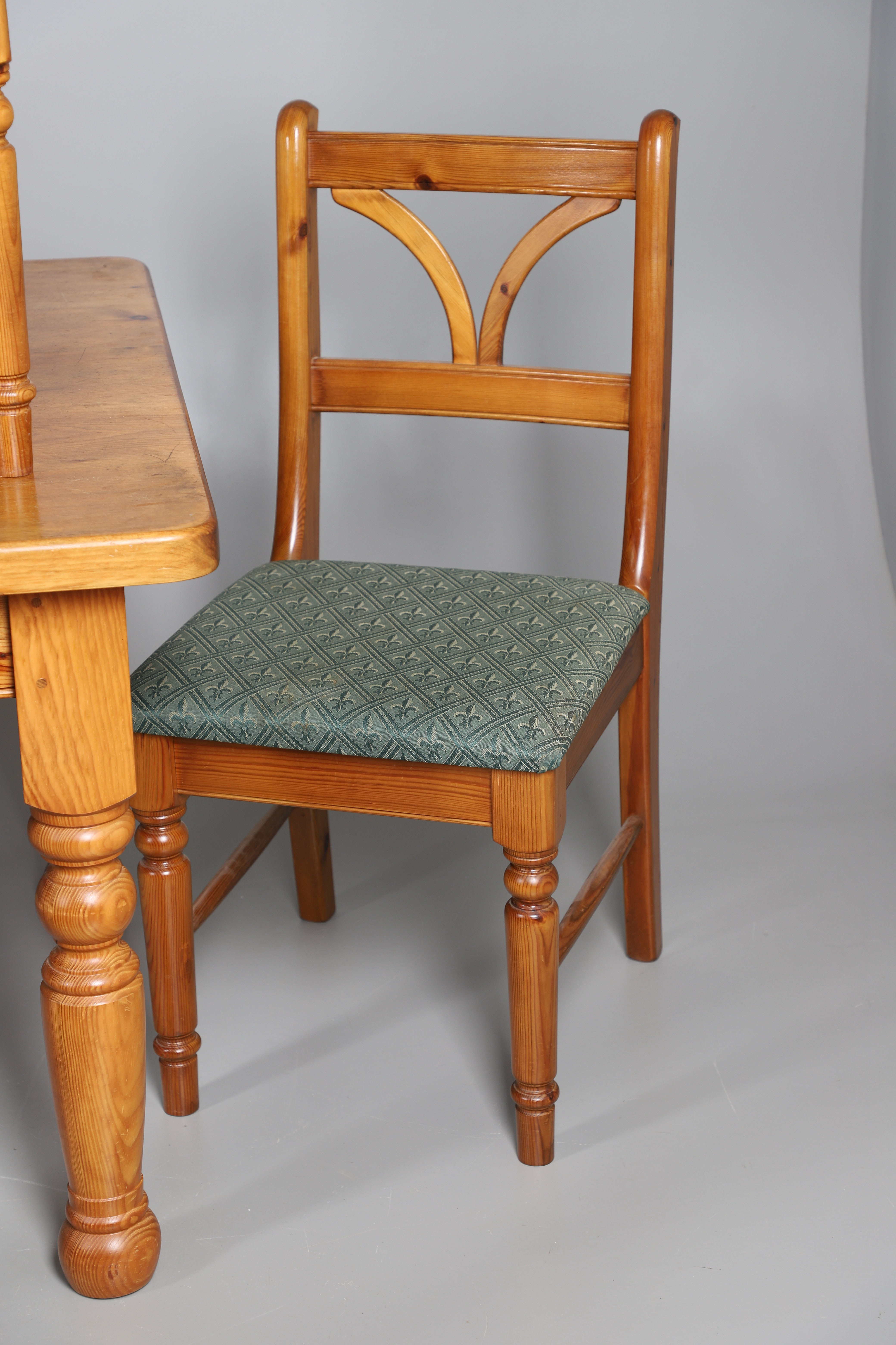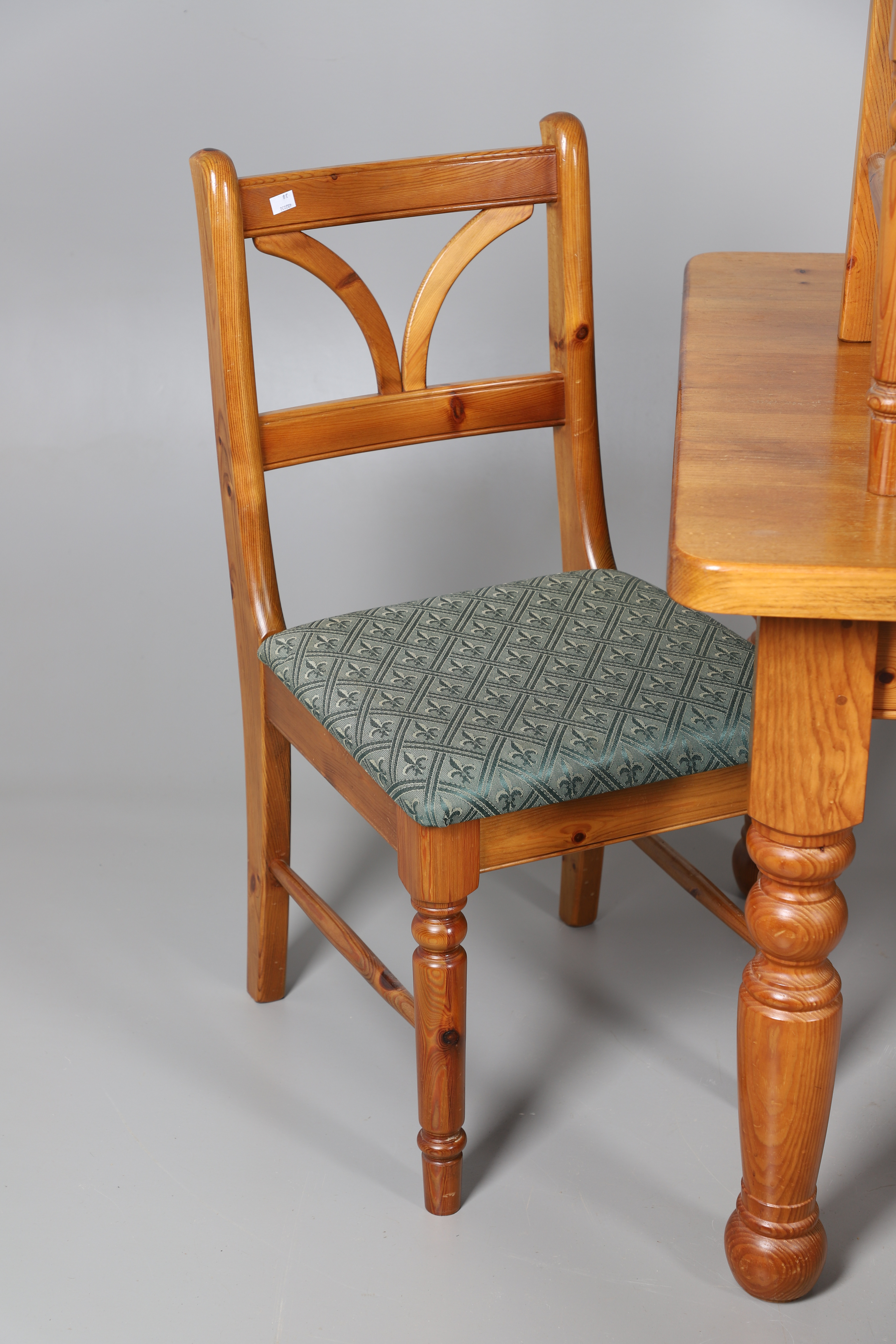 3308113. A MODERN PINE KITCHEN TABLE AND SIX CHAIRS.