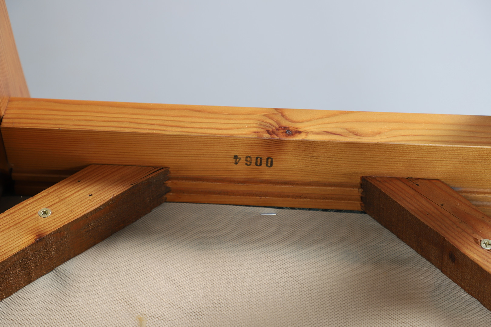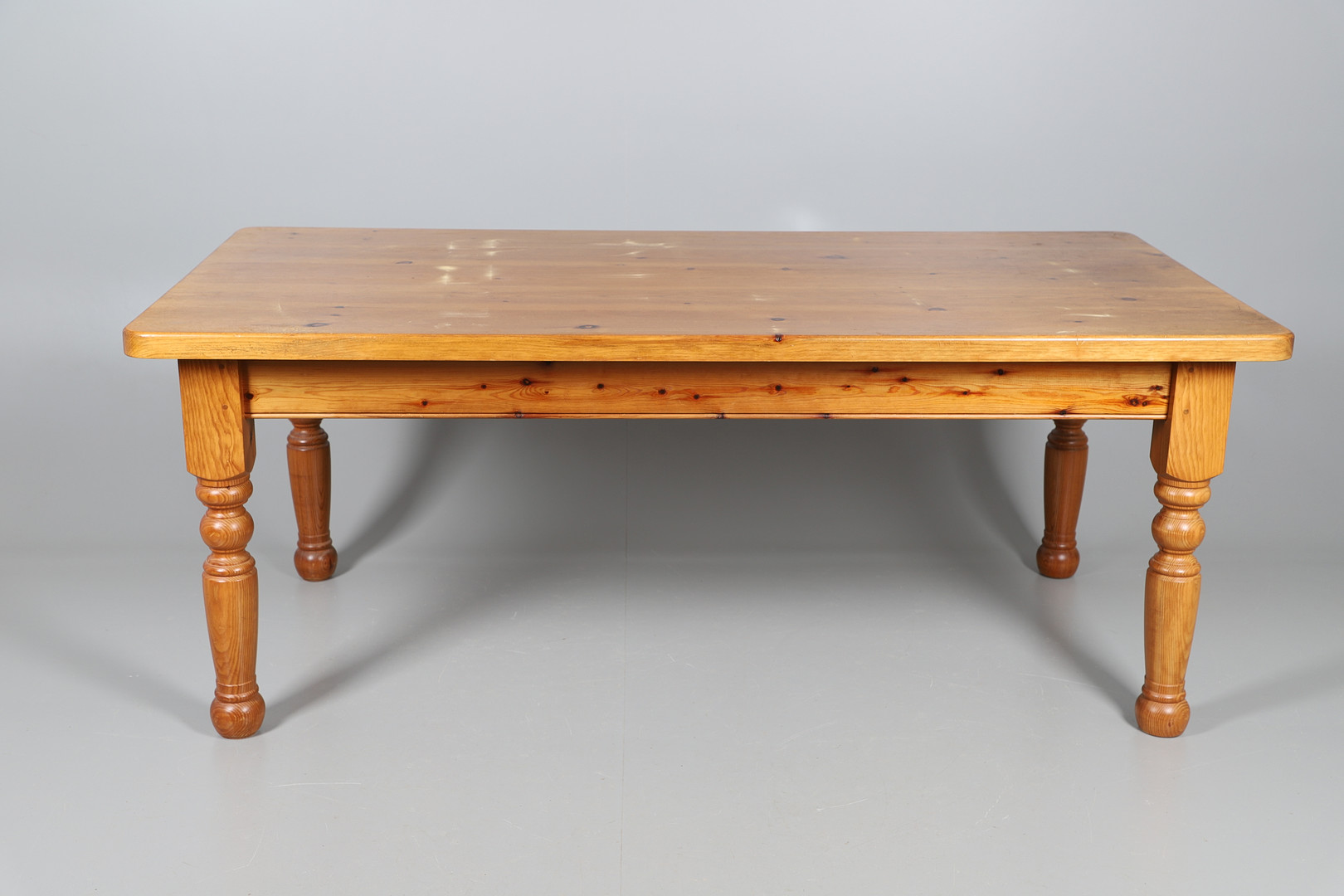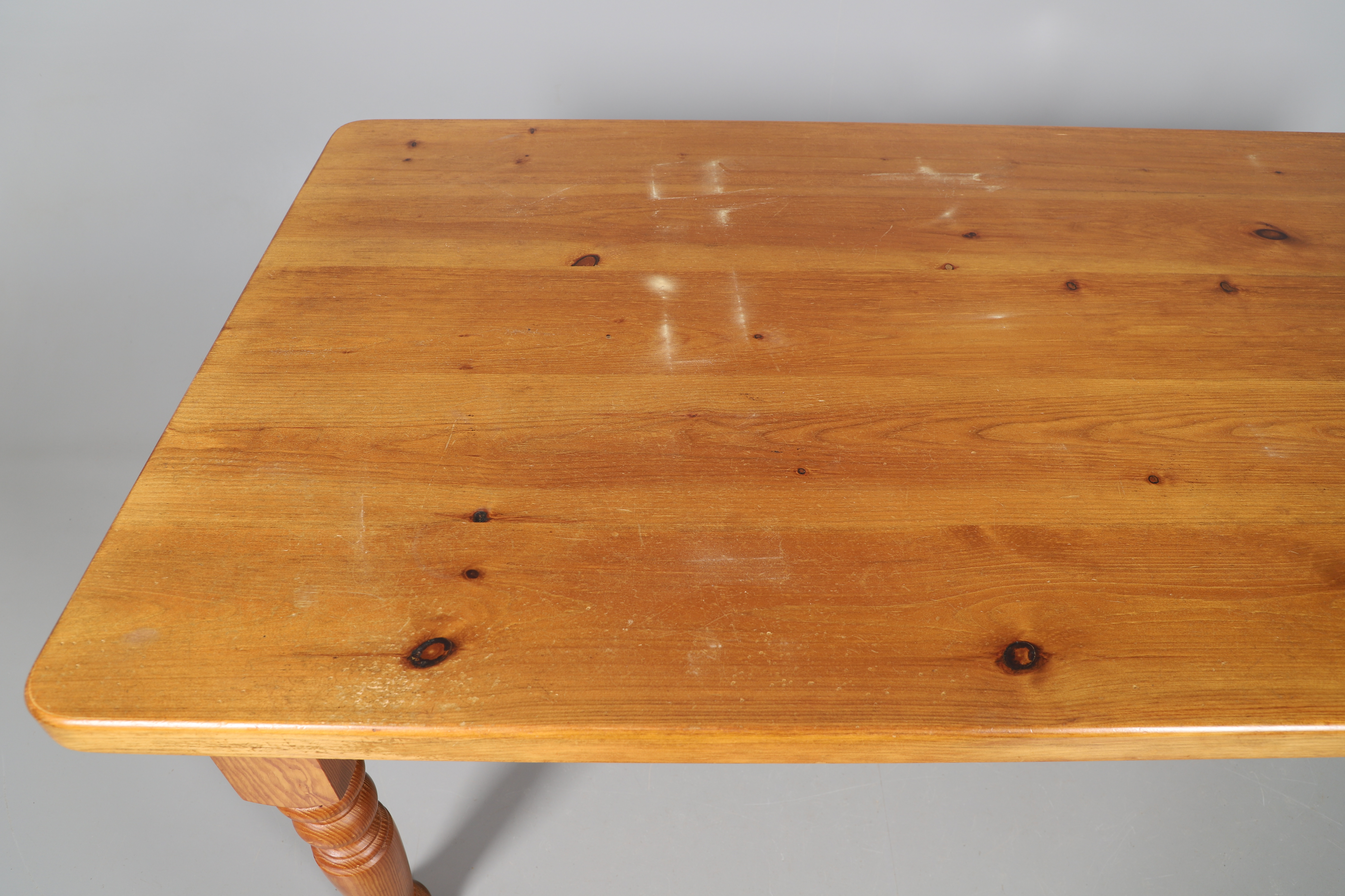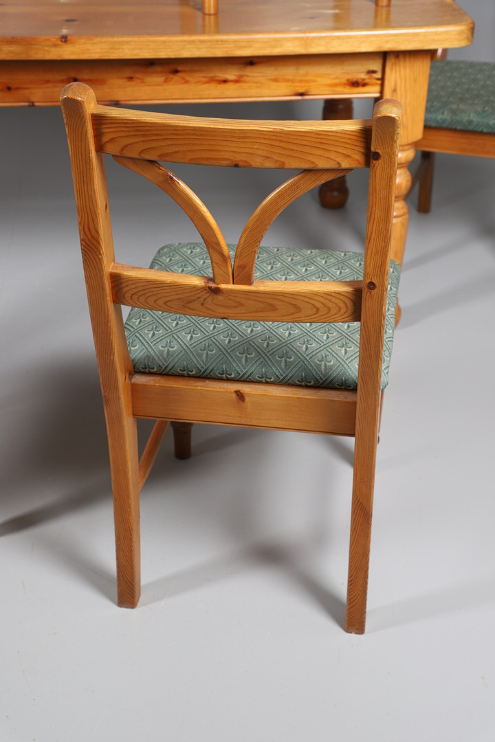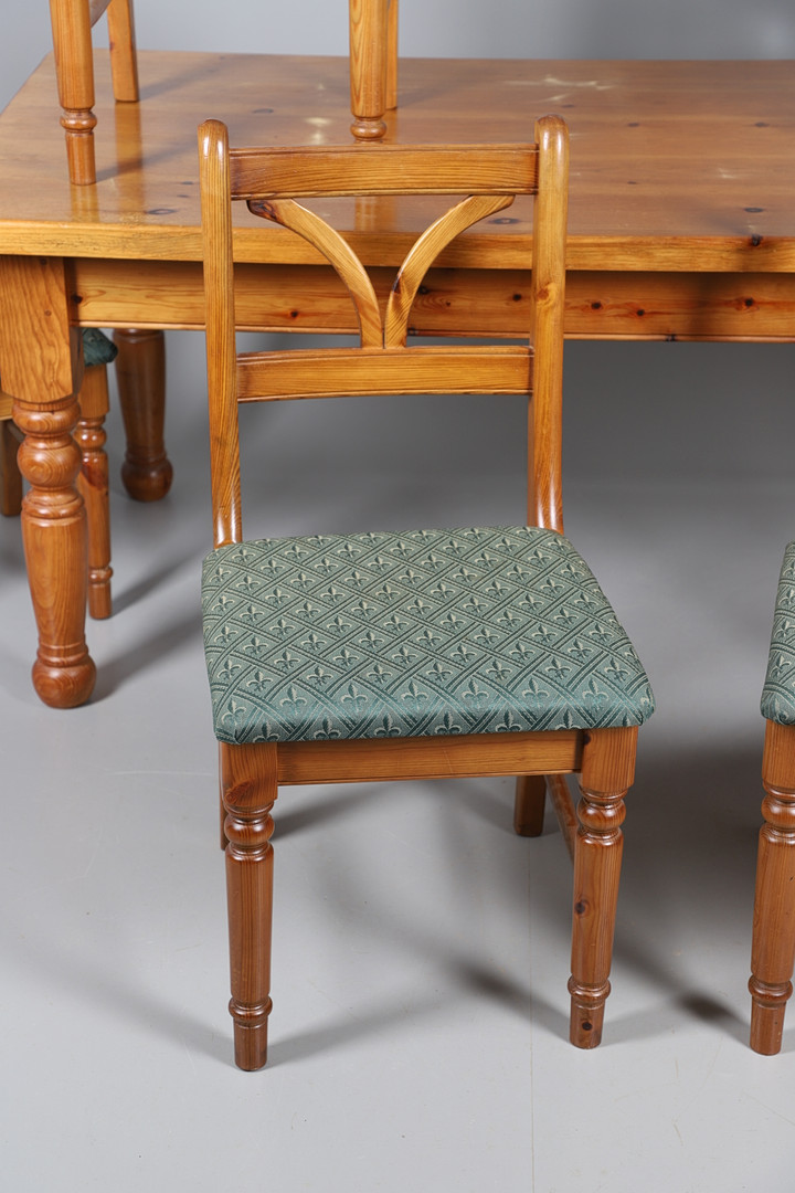 3308113. A MODERN PINE KITCHEN TABLE AND SIX CHAIRS.