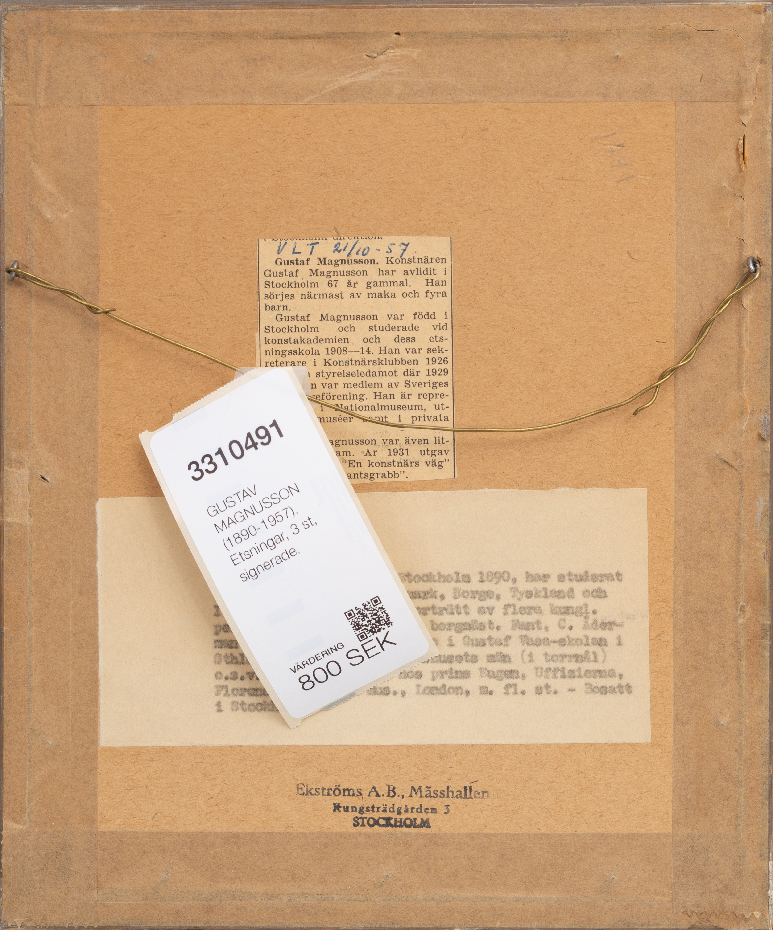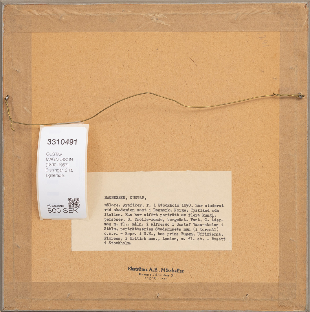 3310491. GUSTAV MAGNUSSON (1890-1957). Three etchings, signed.