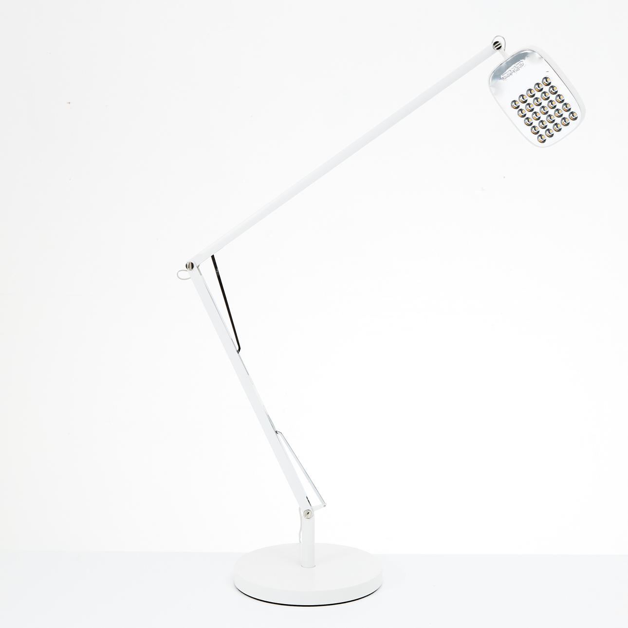 White lacquered aluminum, height adjustable Total developed height approx. 83 cm.