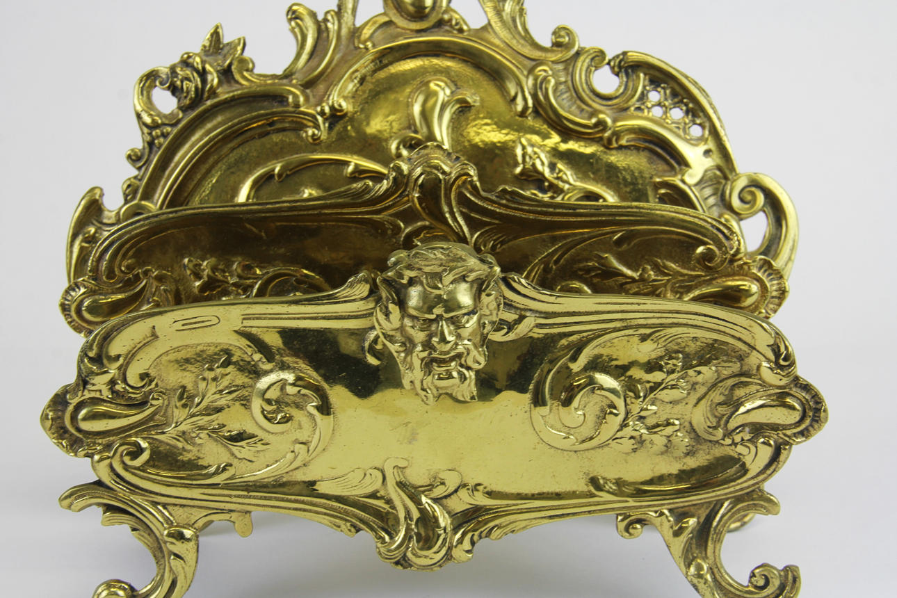 A gilt brass Art Nouveau style letter rack, H. 25, W. 25cm.
