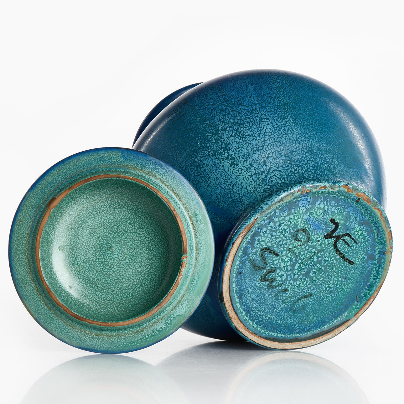 3315602. UPSALA EKEBY, lid urn, 1920s, marked, glazed, ceramic.