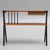 Teak veneer, a box, blackened leg stand, brass magazine tray. Not marked. Length 71 cm, depth 31 cm, height 57 cm.