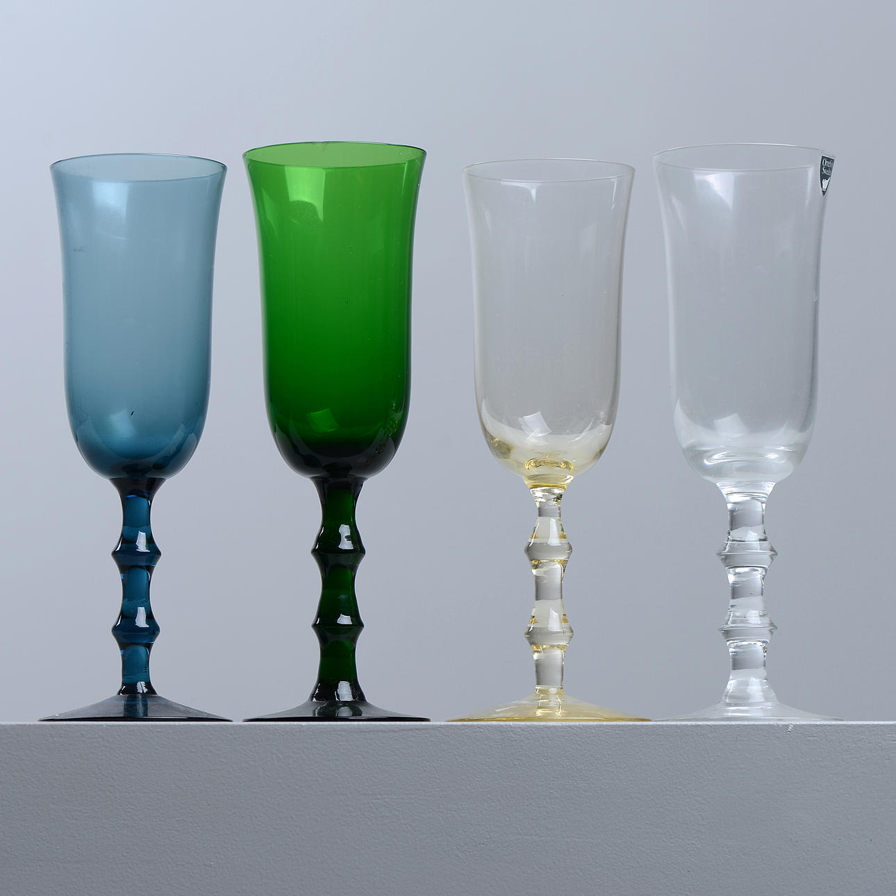 Different colors of the glass mass. Height 18.5 cm.