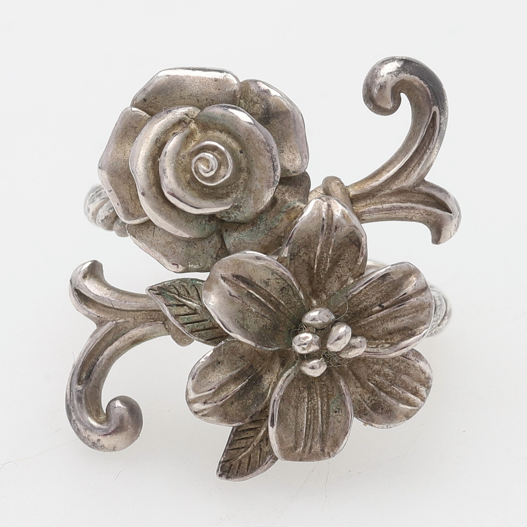 3317214. LARS WALLIN. ring, flowers, sterling silver.