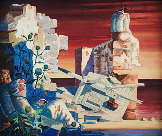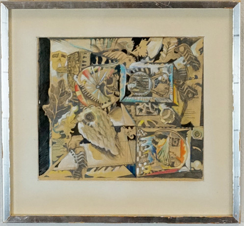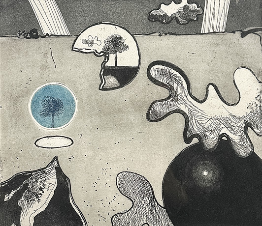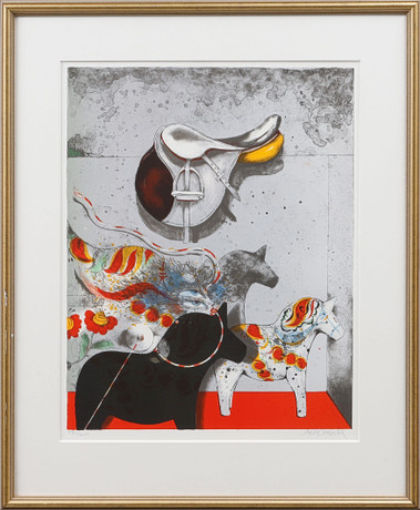 3318665. ERIK OLSON. Surrealist composition, lithograph, 147/310, signed and dated 1973.