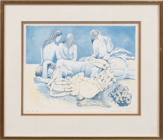 ERIK OLSON. Surrealist composition, lithograph, 147/310, signed and dated 1973.