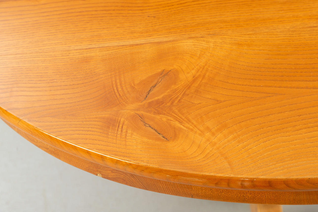 ash tree. Baluster shaft on three curly cut legs. Oval frame with slightly protruding plate HxWxD: approx. 75 x 108 x 82 cm.