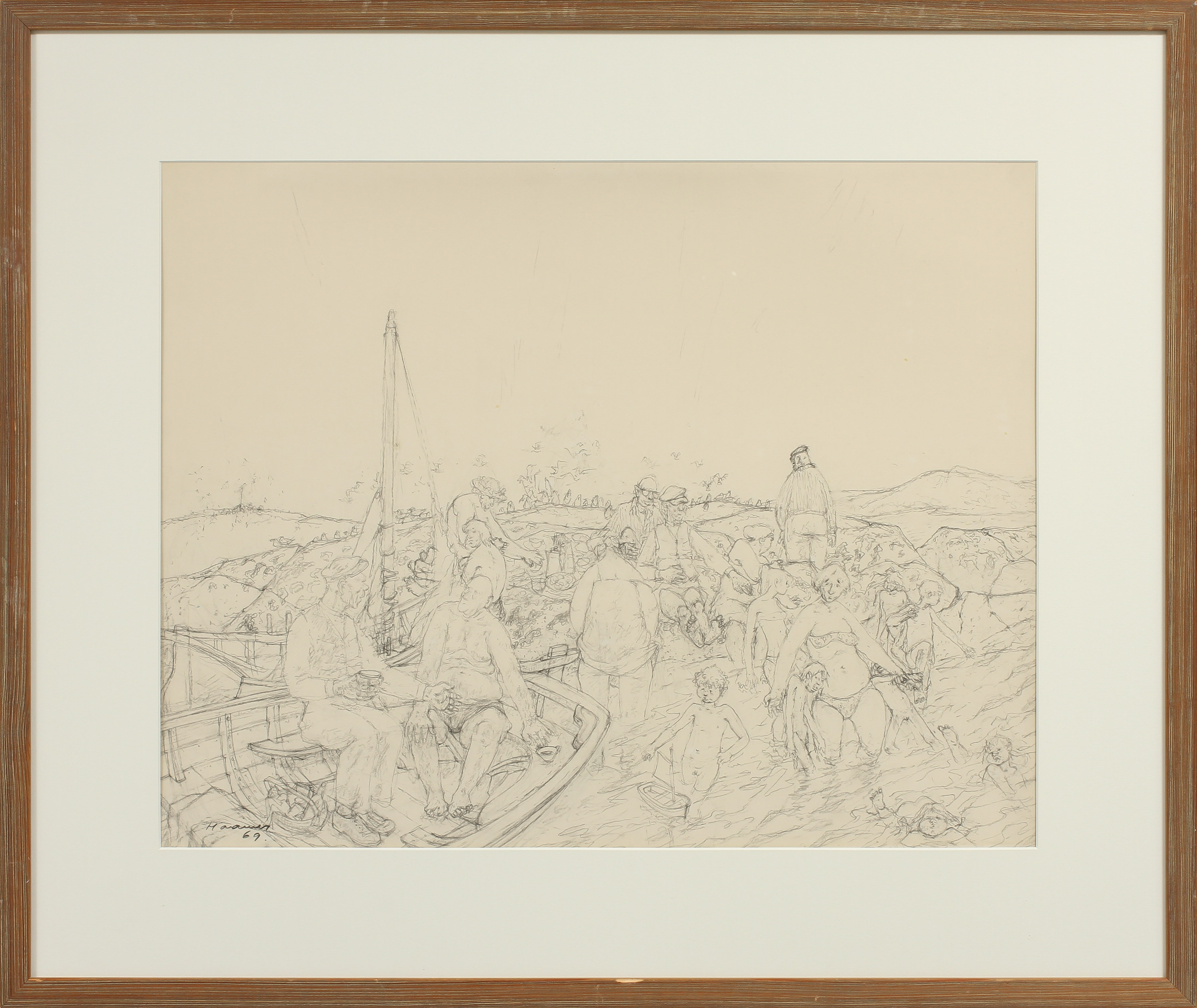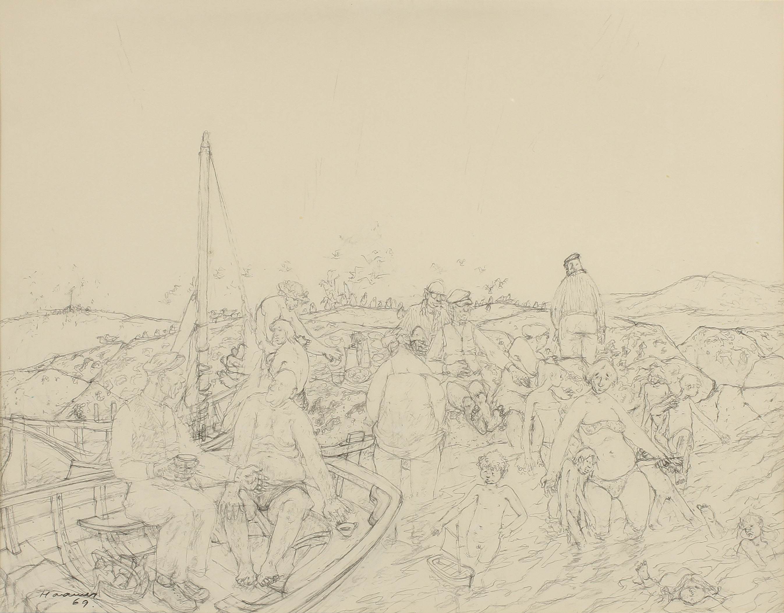 332036. ERIK HAAMER. Bathing, drawing, sign o dat 69.