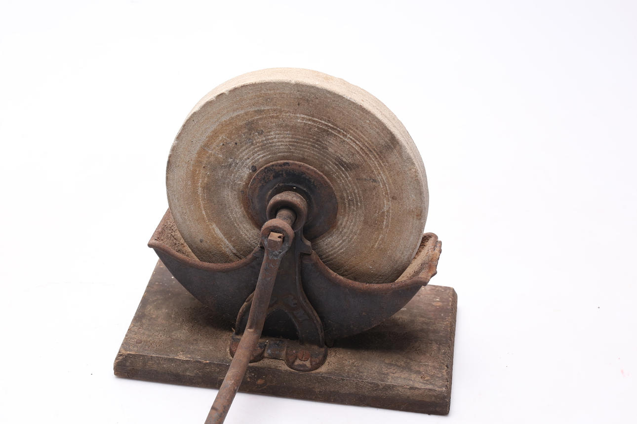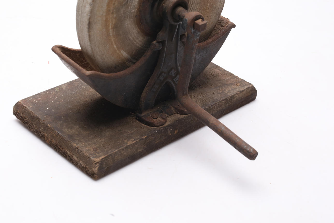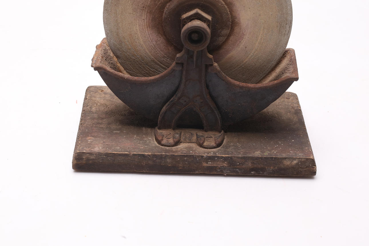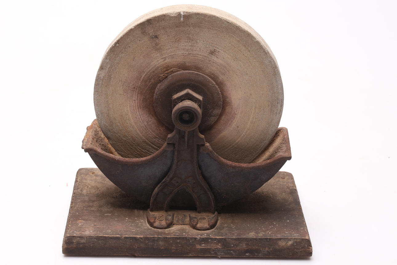 Metal, on wooden board. Height approx. 25 cm.