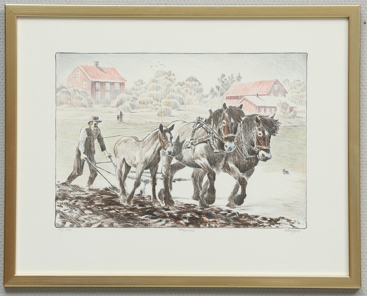 3321692. HENRY GUSTAFSSON. Lithograph, “Ploughing”, signed, numbered 53/200.