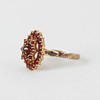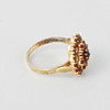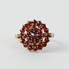3321844. A RING, low content gold approx. 9 k and garnets.