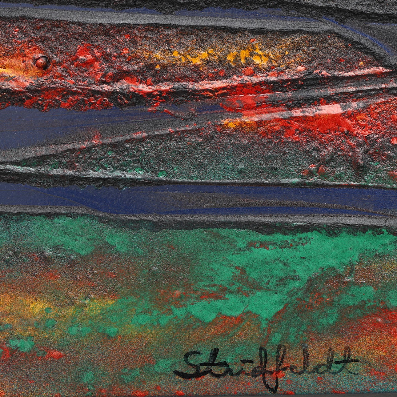 Signed, enamel on plate, 44x61 cm.