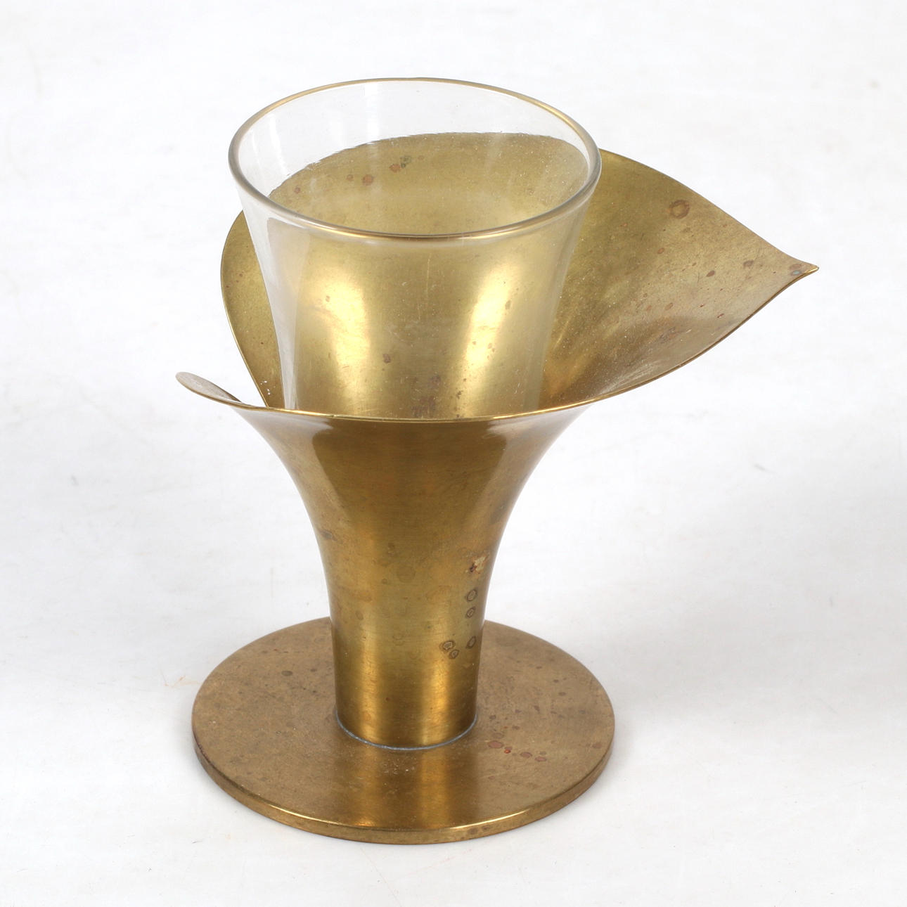 3329756. CARL EINAR BORGSTRÖM. Vase, brass with glass insert, Ystad Metall.