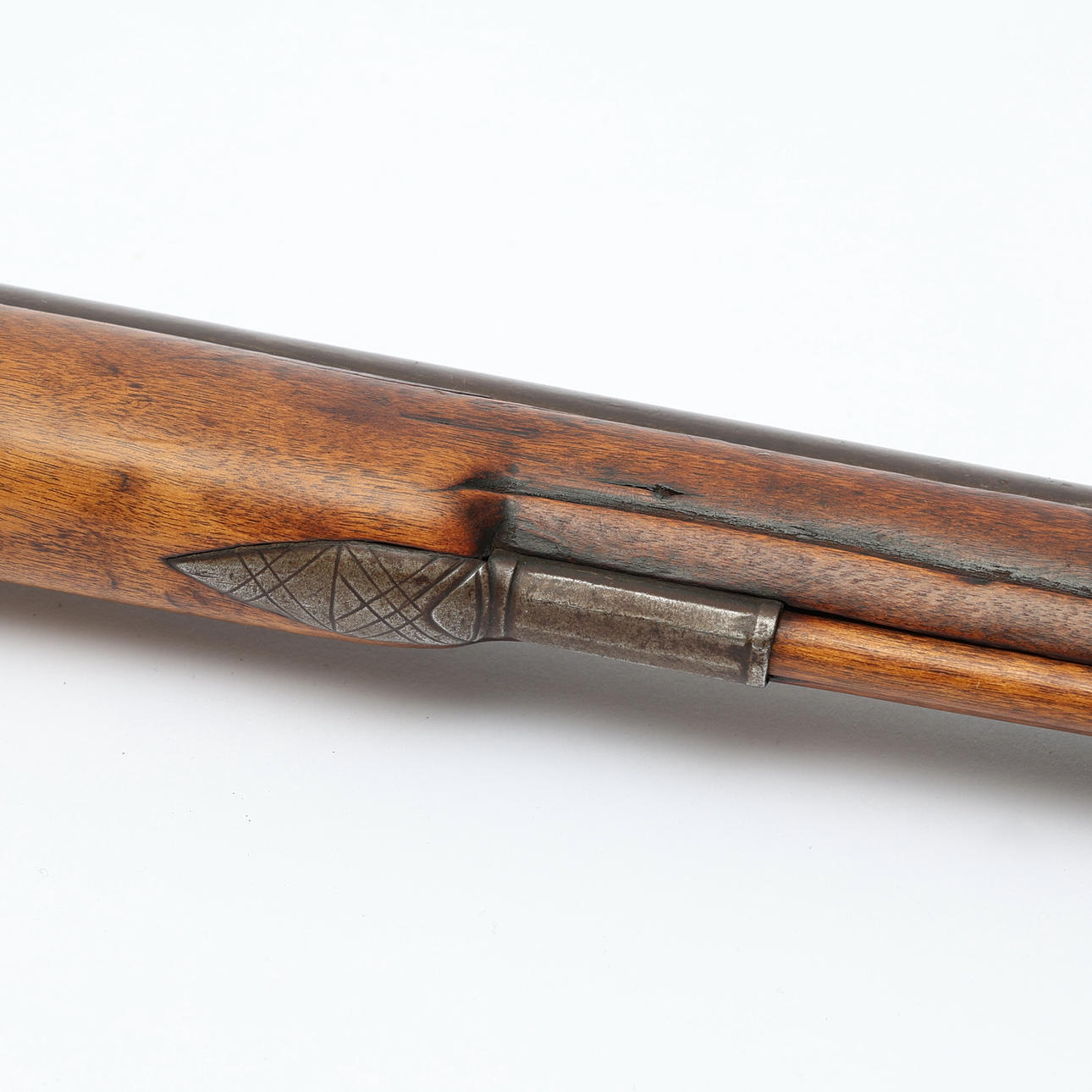 Age-related condition, charging stake later replaced, bone details at barrel probably later.
