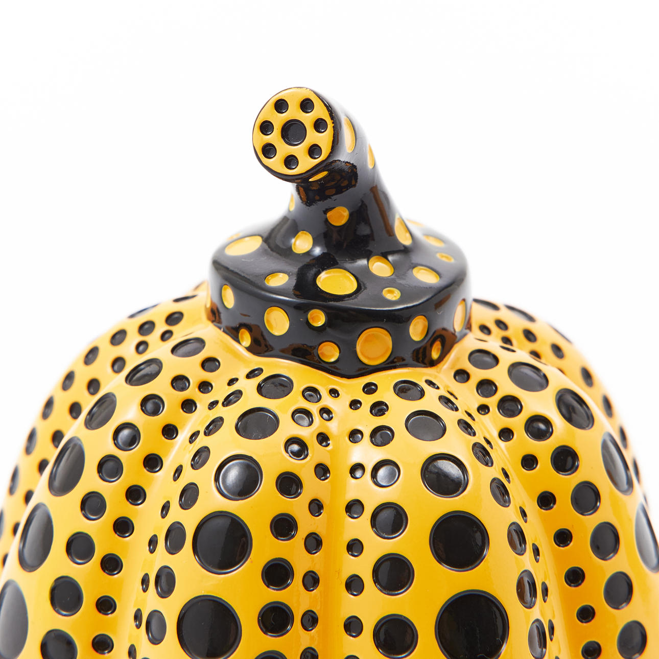 In original packaging, marked at the bottom © Yayoi Kusama, the height of the pumpkin approx. 10 cm, the dimensions of the carton 11, 12.5 x 12.5.