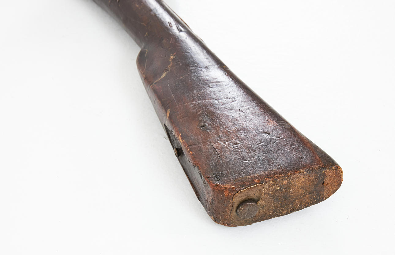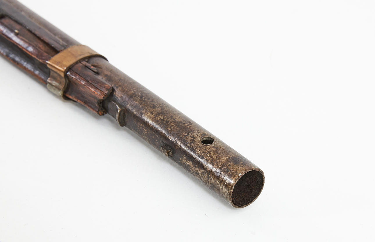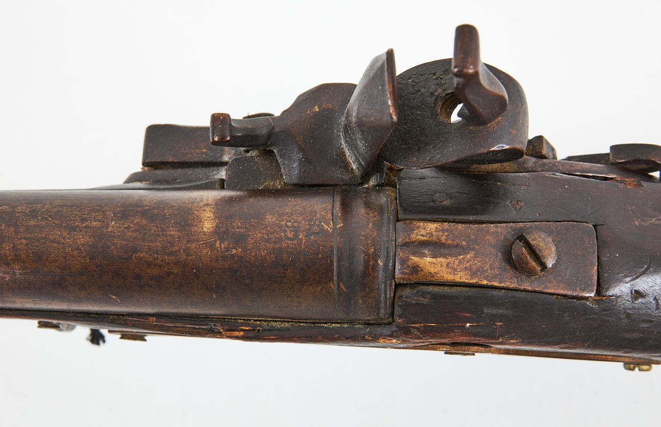 Wear and damage, additions; later side bleck and swivel, muzzle fittings, charging rod, male lip and rear cap missing.