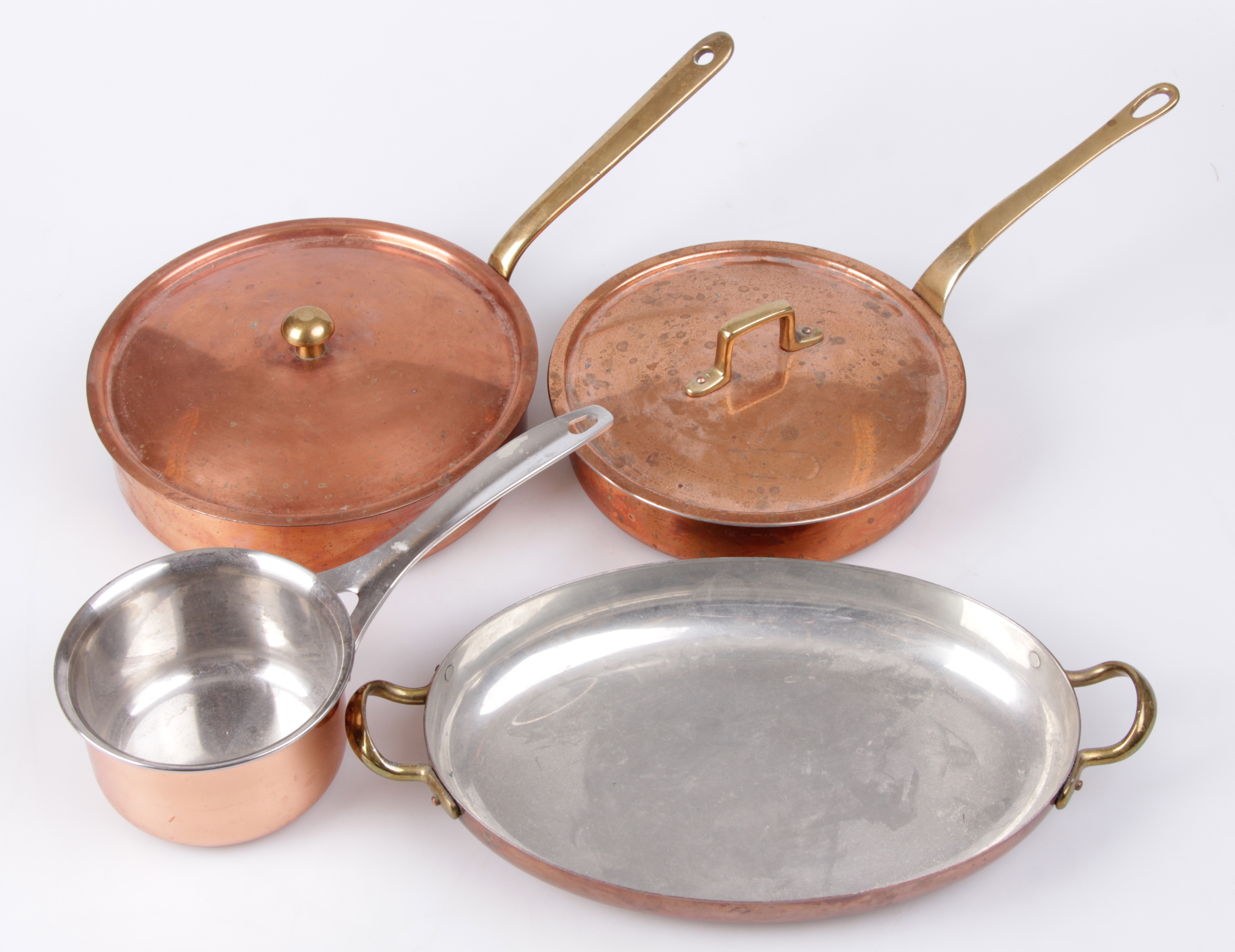 333210. POT, tractor pans and baking dish, copper, 1900s.