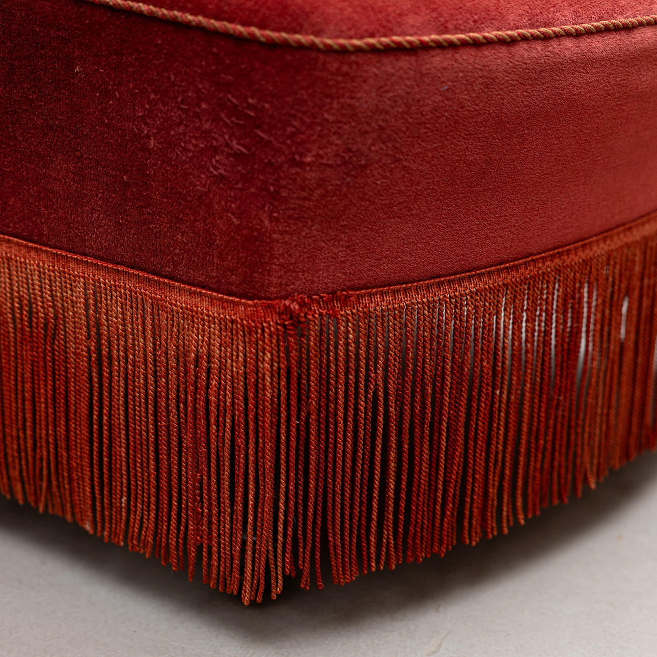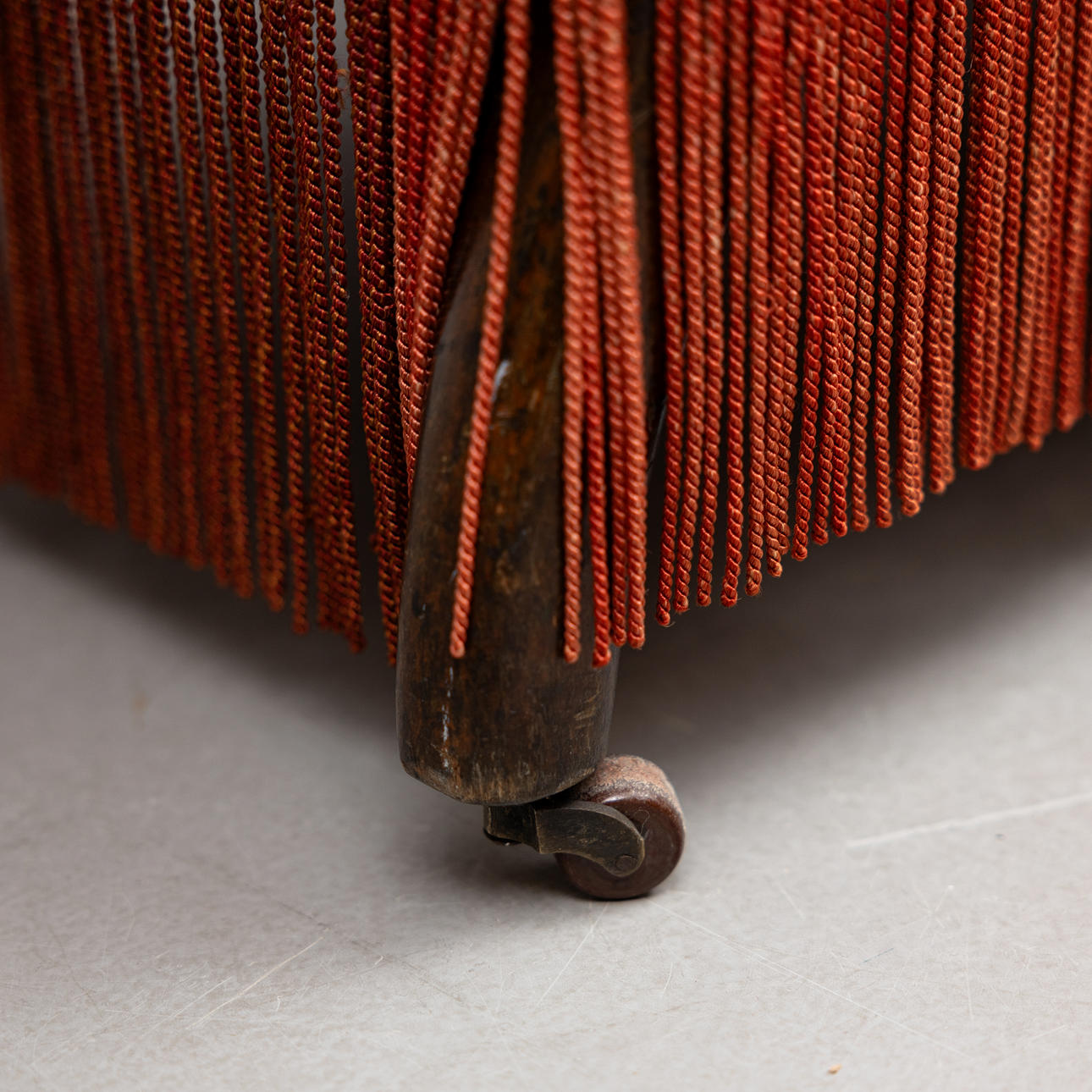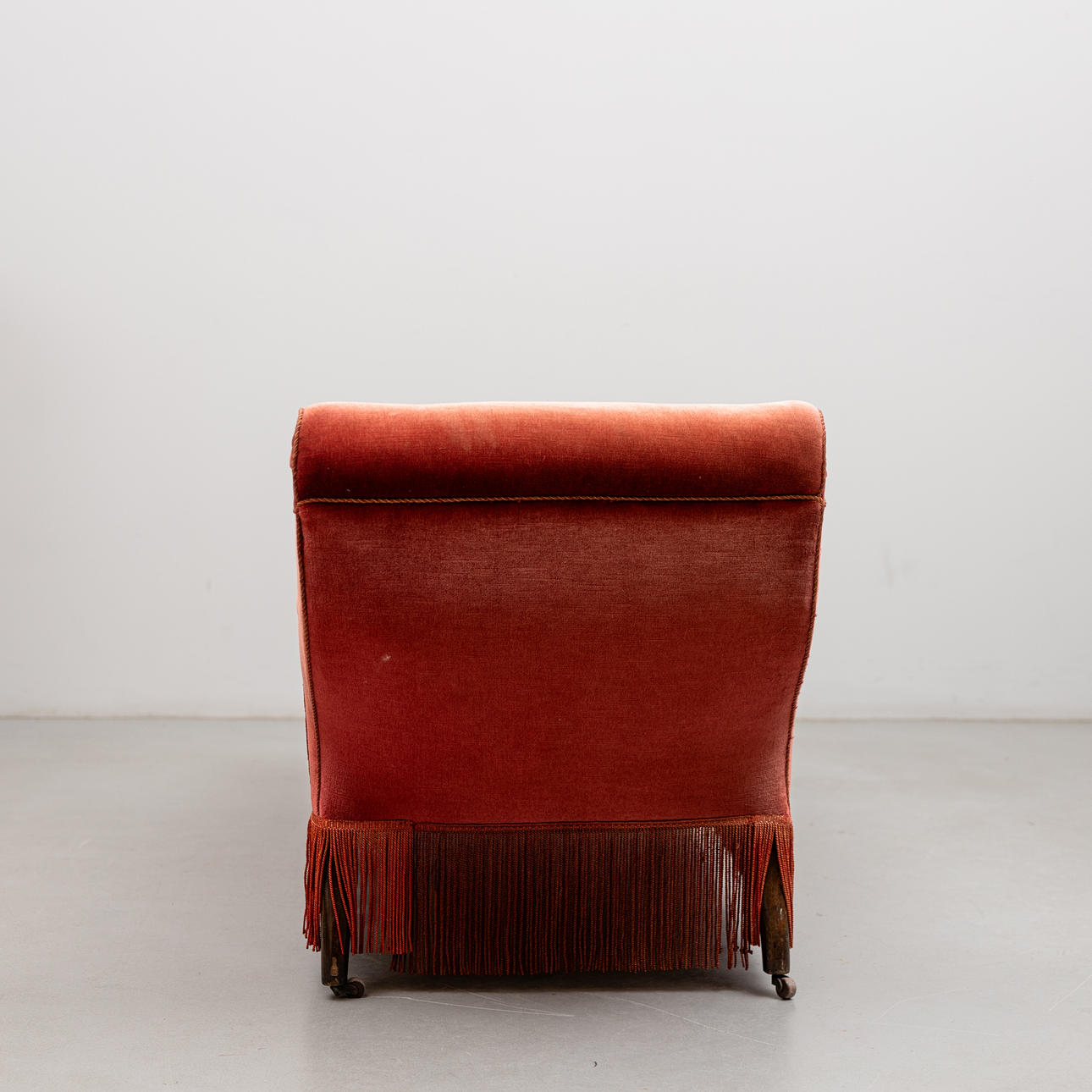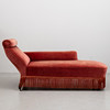Solid upholstery, upholstered and dressed. On wheelbarrows. Length ca 175, seat height 43 cm.