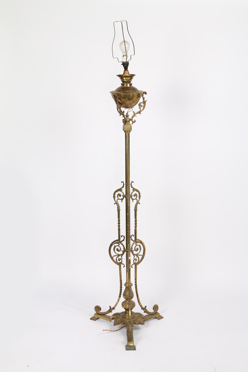3333449. A LATE VICTORIAN BRASS STANDARD LAMP.