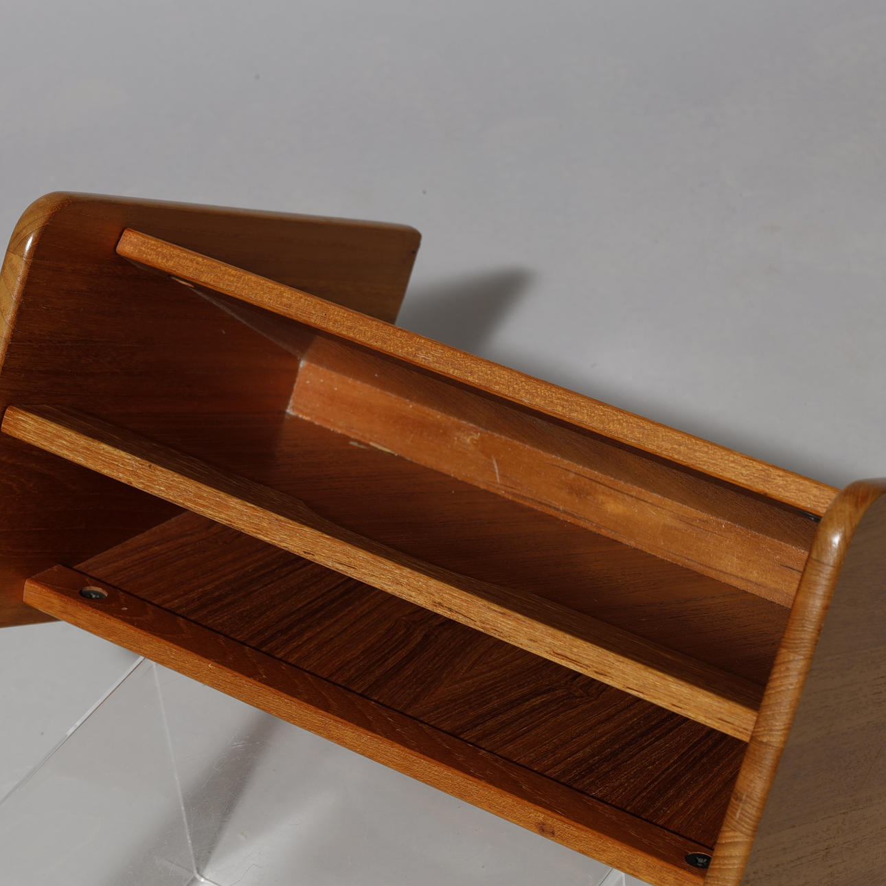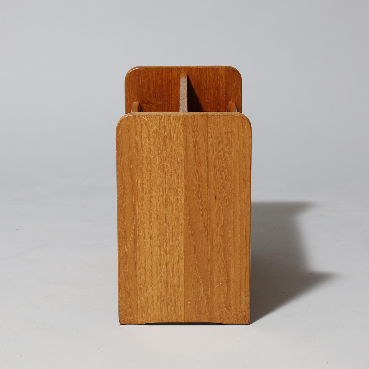Teak magazine holder, manufactured at FBJ Møbler, Denmark. Height: 40.5 cm. Length: 48 cm. Depth: 24.3 cm.