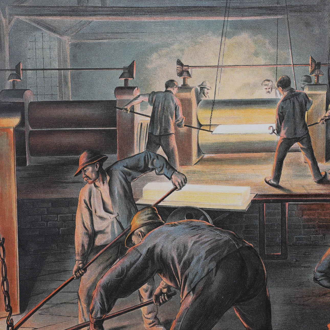 Depicting workers in steel mills.