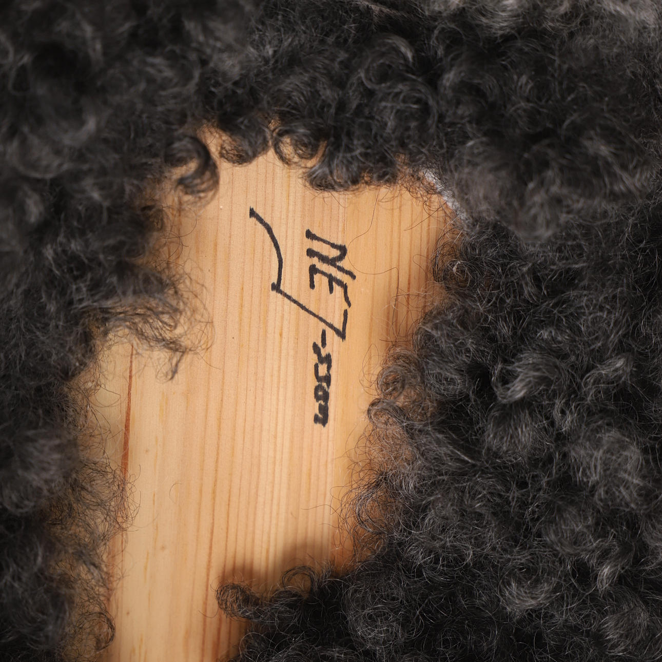 ROCKING SHEEP, sheepskin-clad pine, signed.
