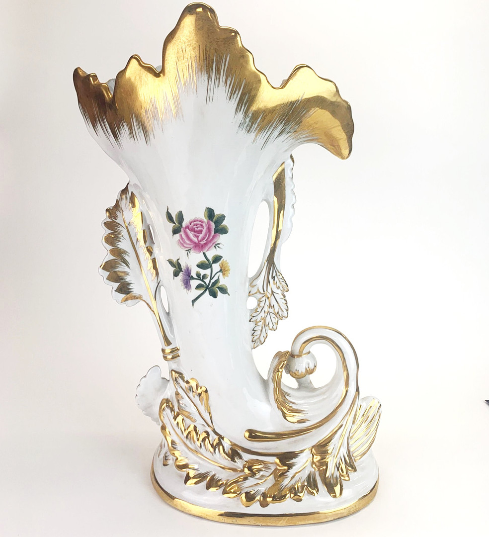3339165. 19TH C. PARIS PORCELAIN CORNUCOPIA VASE.