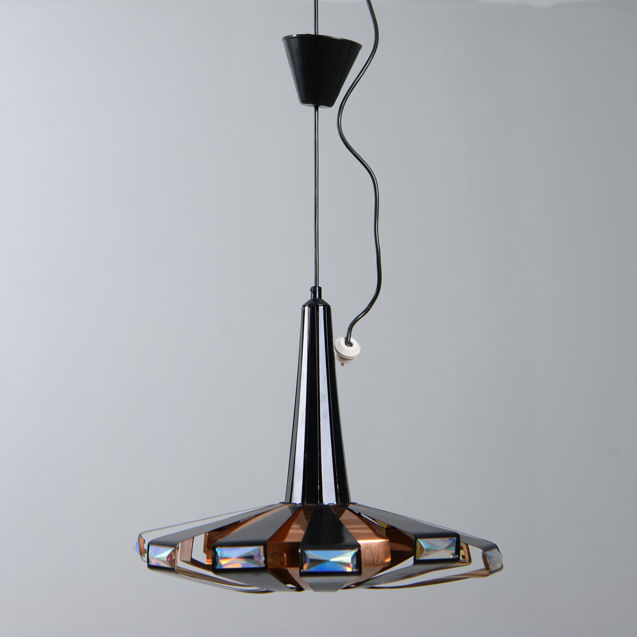 Made of copper and lacquered metal. Ø 42 cm. Height, excluding cord 38 cm.