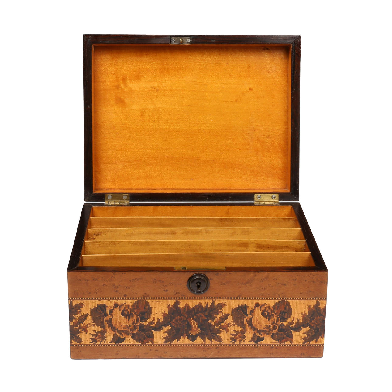 3340589. A VICTORIAN TUNBRIDGE WARE MAPLE BOX.