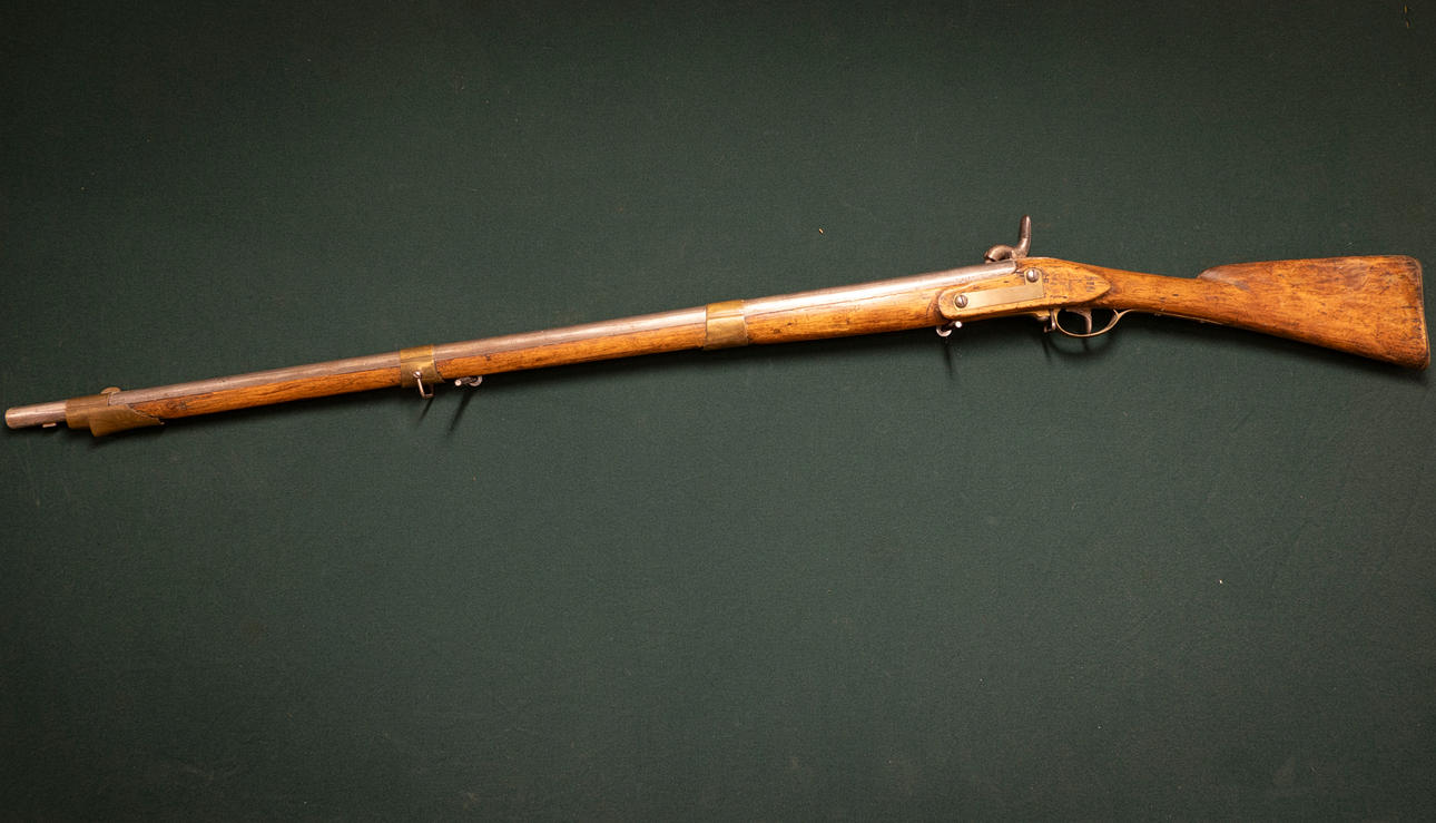 Marked H (Husqvarna), production number 1916. Total length: 145 cm, spout length: 103 cm, mouth: about 19mm. Unnumbered bayonet included.