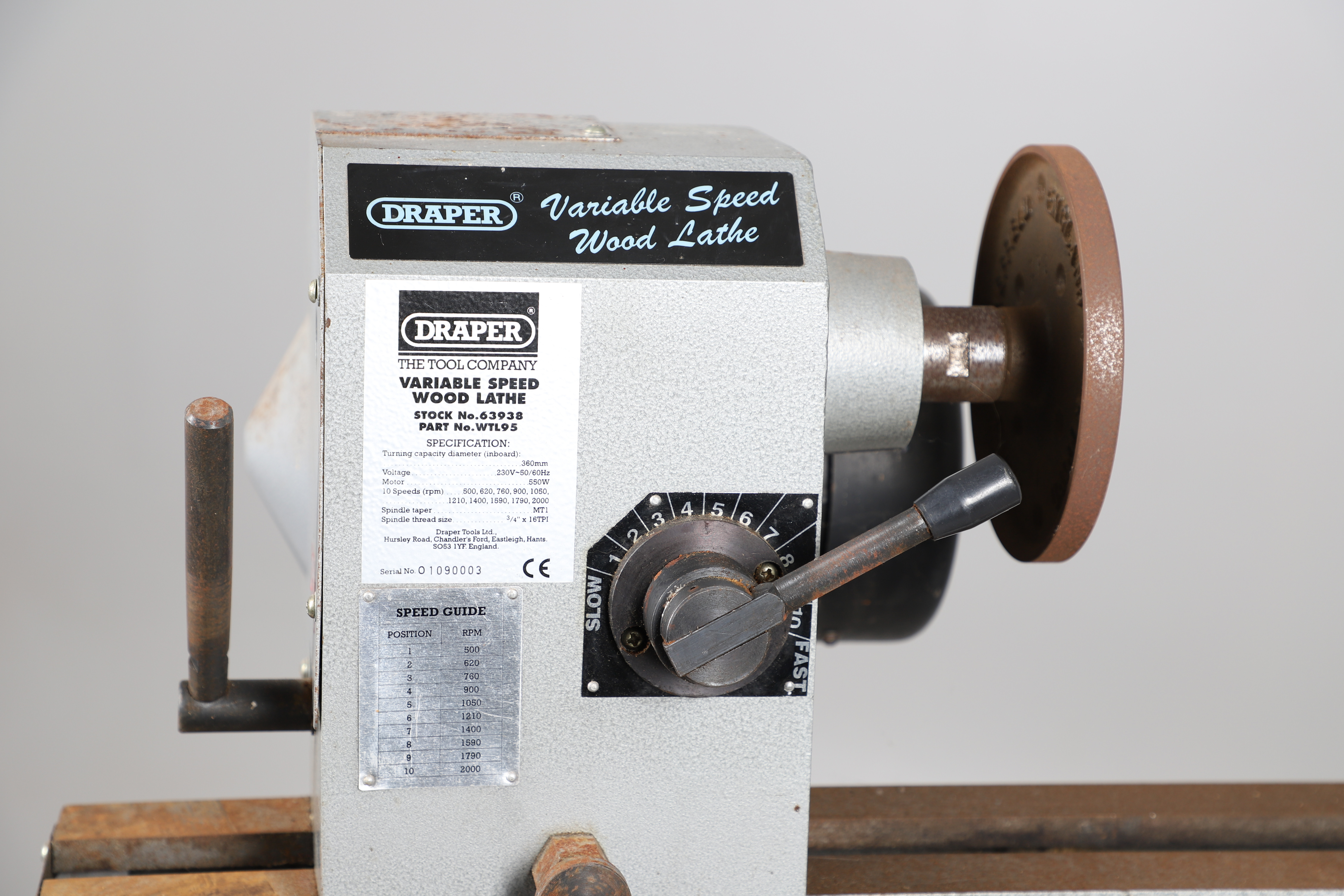 3344542. A DRAPER VARIABLE SPEED WOOD LATHE.