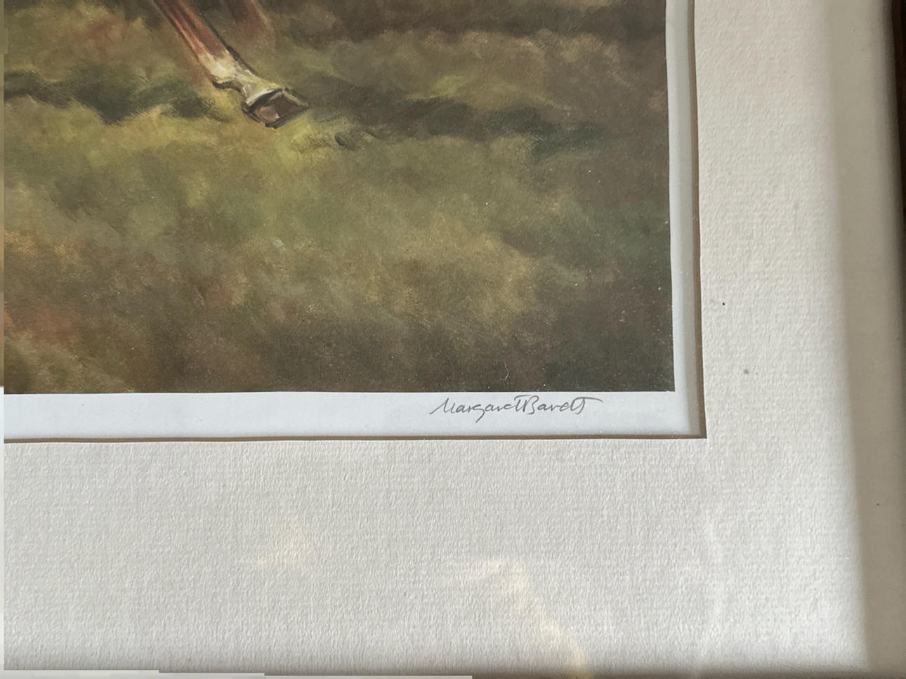 A framed limited edition 275/500 print entitled ' Full Stretch' pencil signed by Margaret Barrett, frame size 78.5 x 62.5cm.