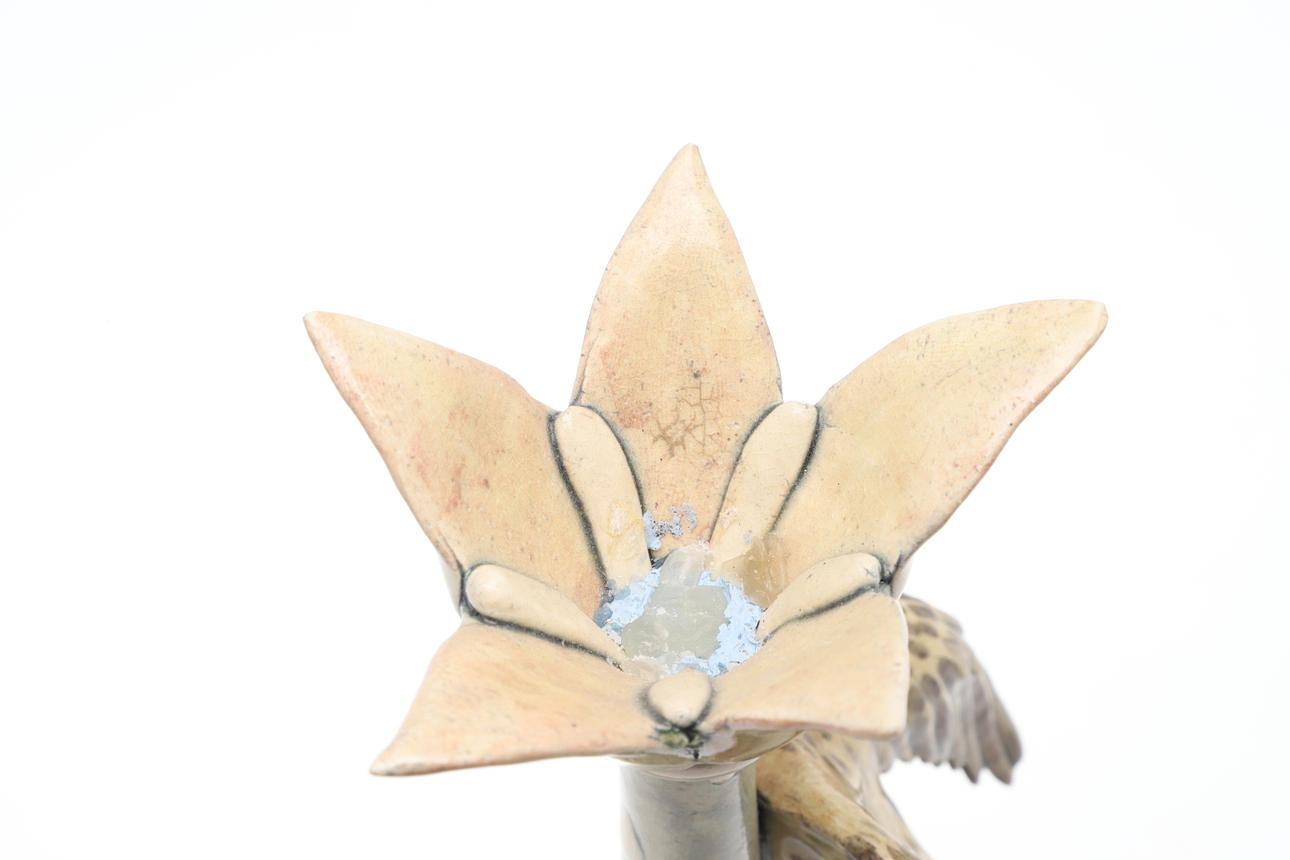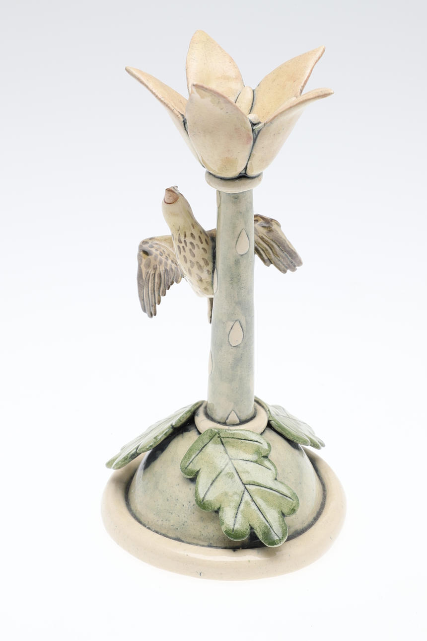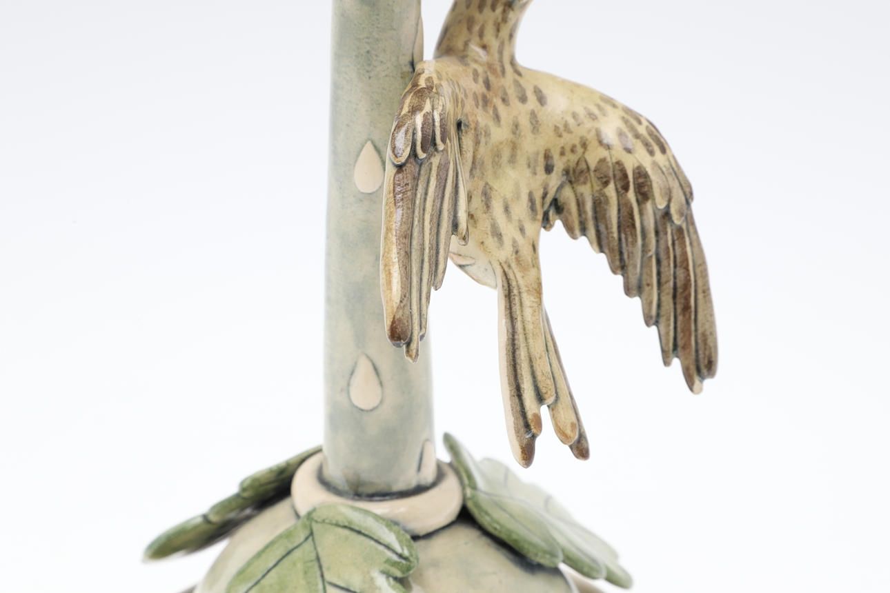 Modelled with a bird and applied leaves.
