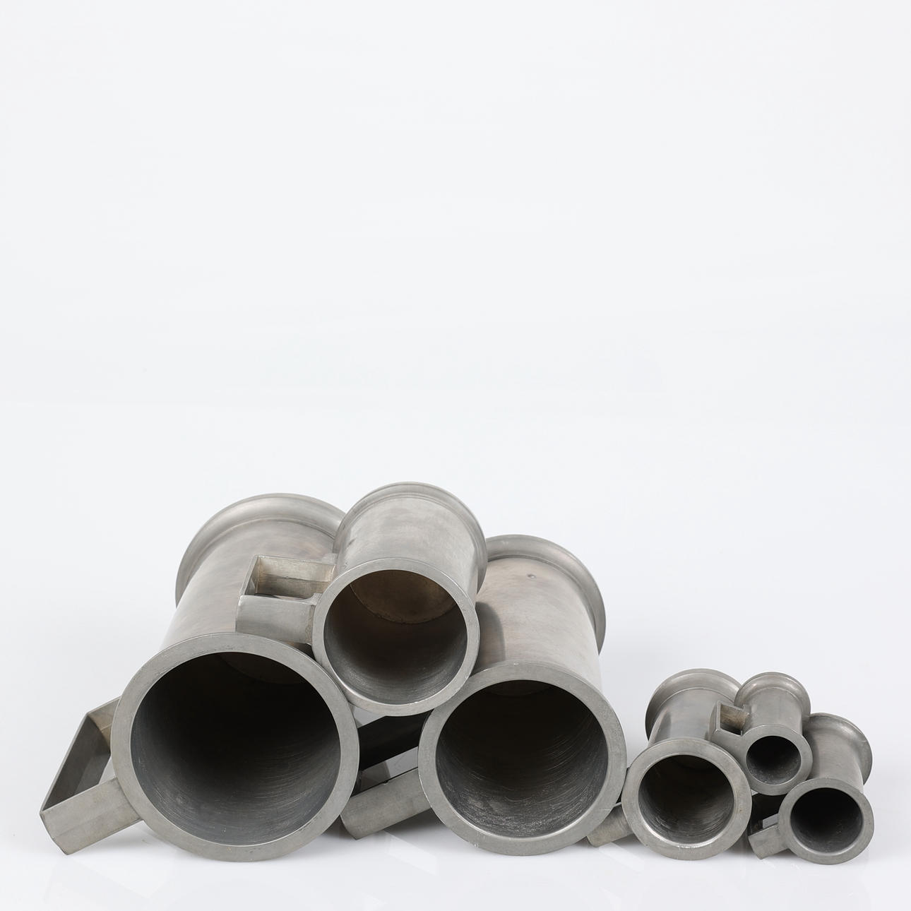 3353464. MEASURING JUGS, 6 pieces in tin.