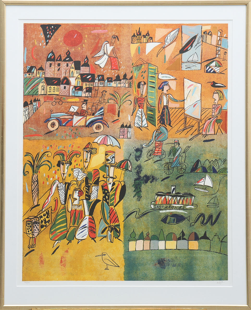 Signed, numbered 182/275, lithograph in colours, image approx 90x72,5 cm.