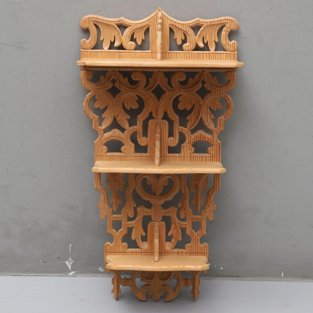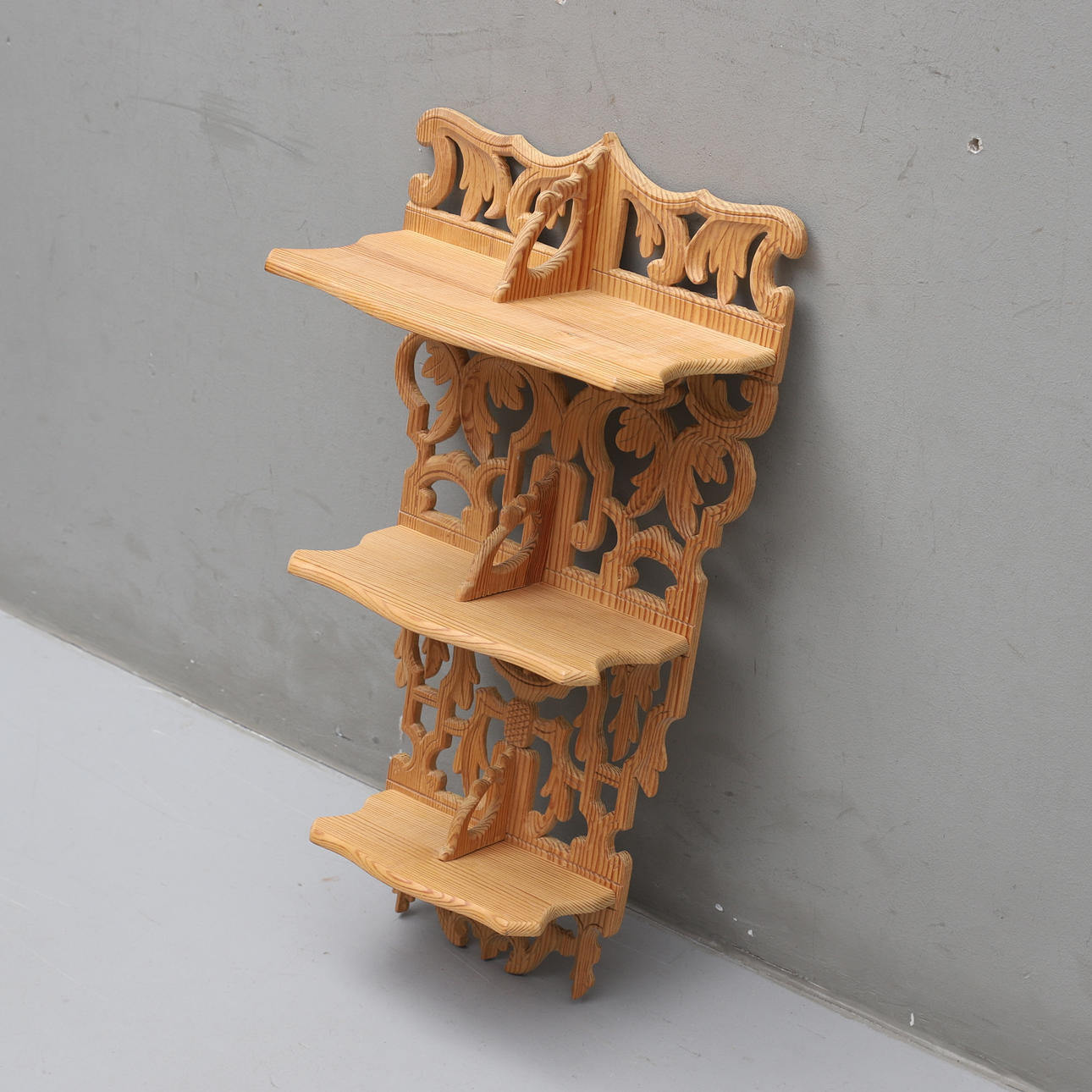 Carved shelf in pine. Length 34 cm, width 20 cm, height 62 cm.