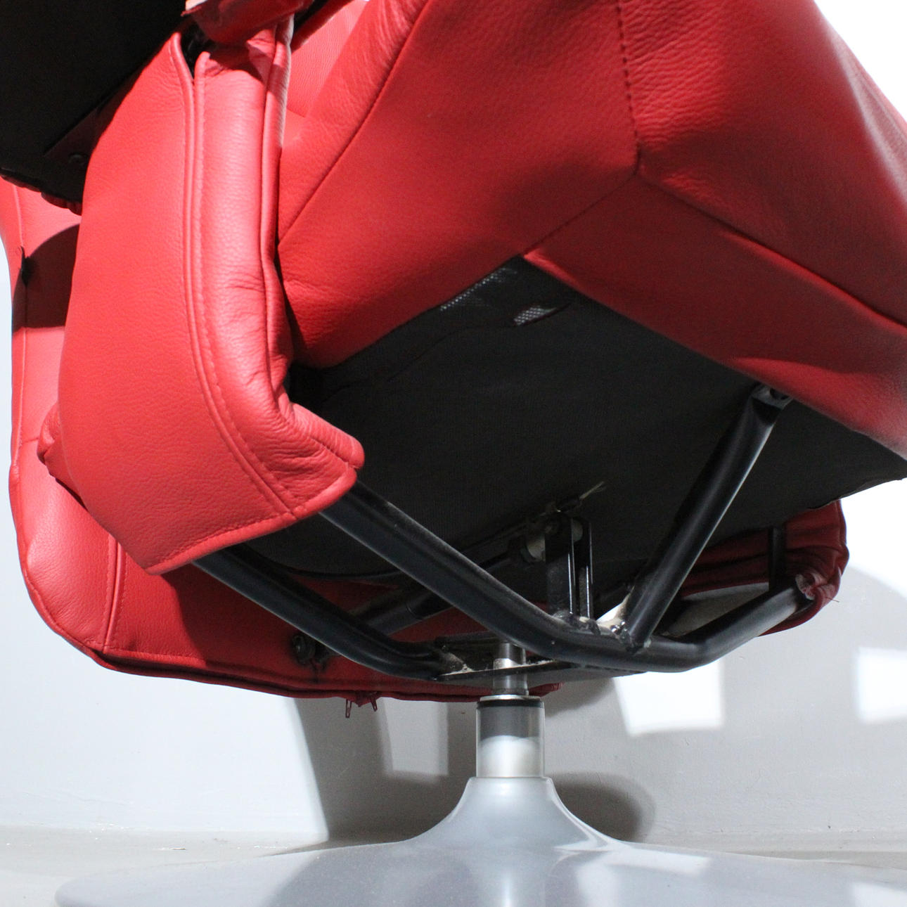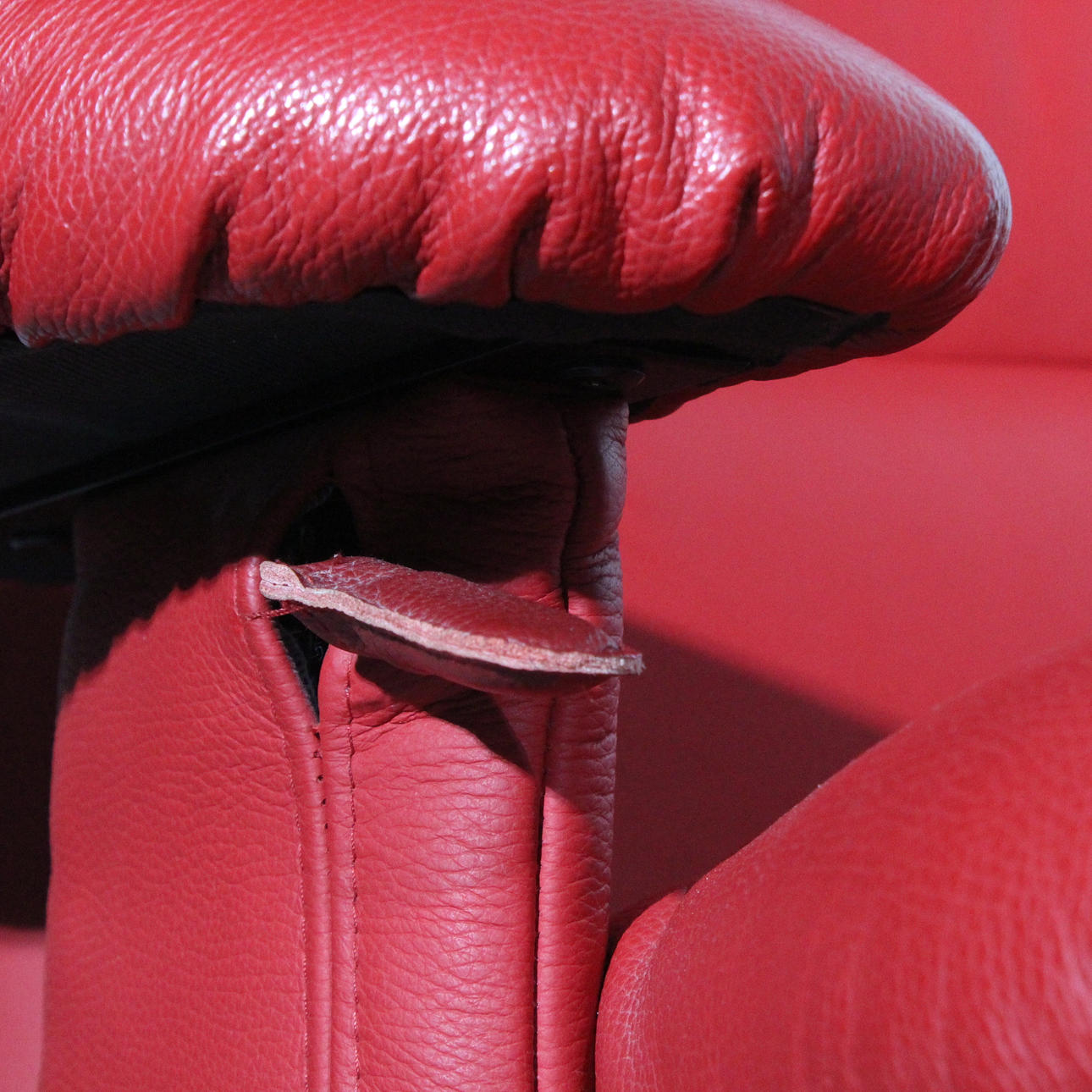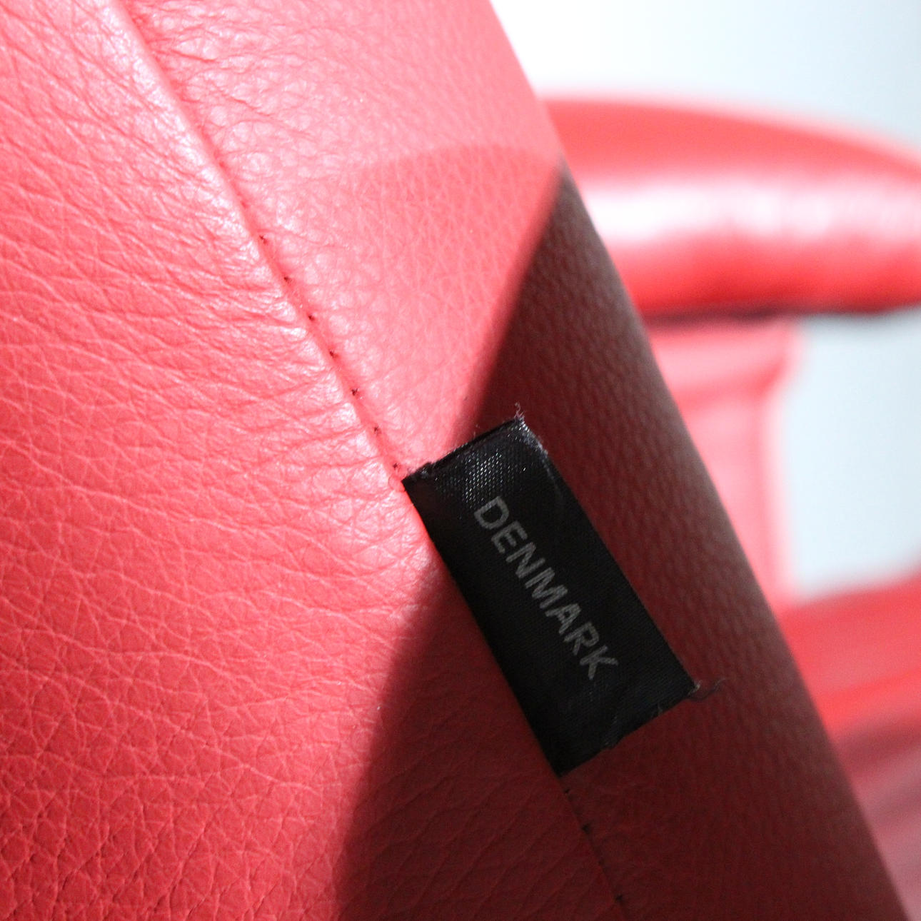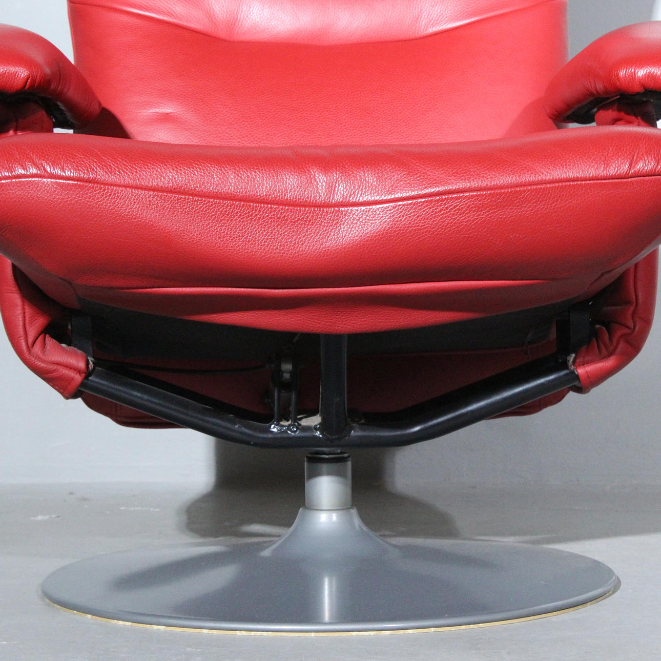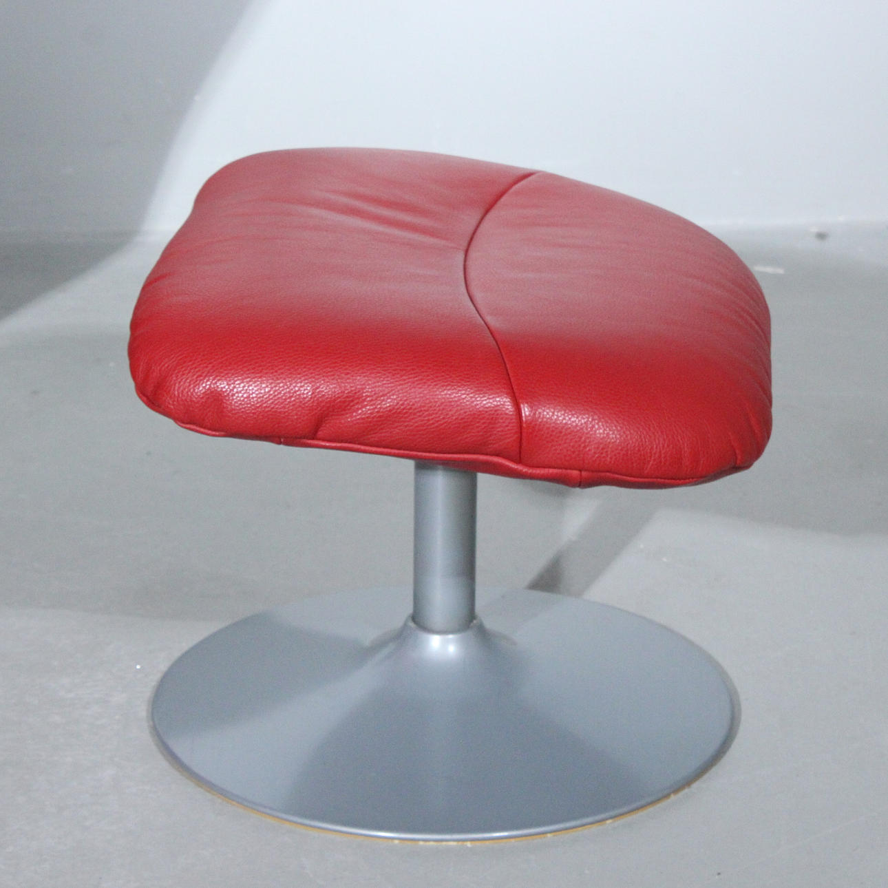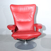 VERIKON. Red armchair + ottoman, Denmark, made of steel and leather