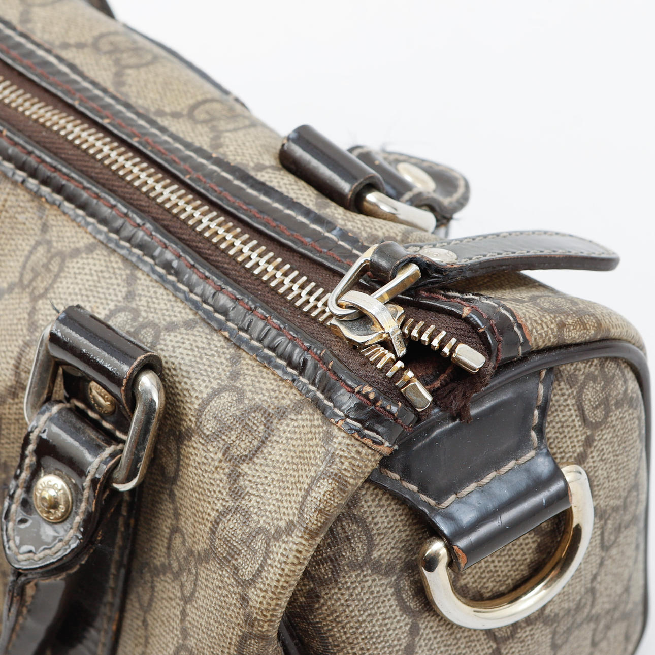 Monogram canvas. Details in patent leather. 25x11x14.