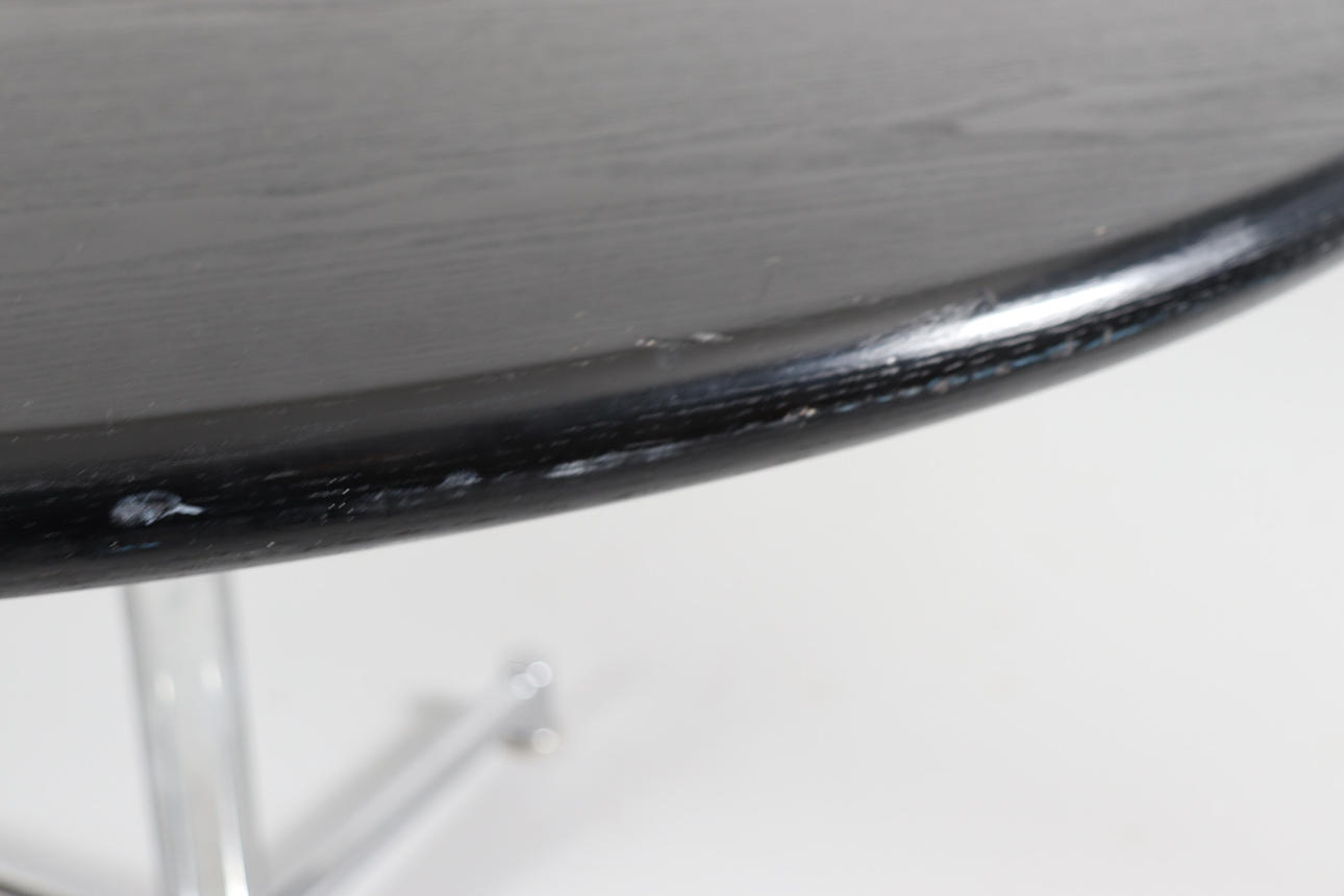 Round dining table/conference table, Walter Knoll, 'Dreipunkte Art Collection', 1980s, solid construction made of wood in black color with chrome-plated frame, with manufacturer label on the underside,