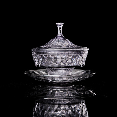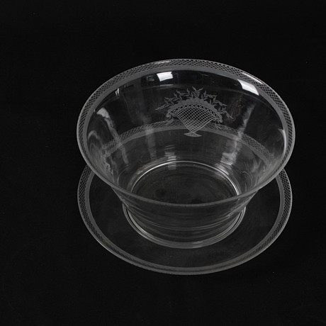 3362385. EDWARD HALD. BOWL ON SAUCER, ORREFORS, WITH THE MOTIF ADAM AND EVE, SIGNED, 1930.