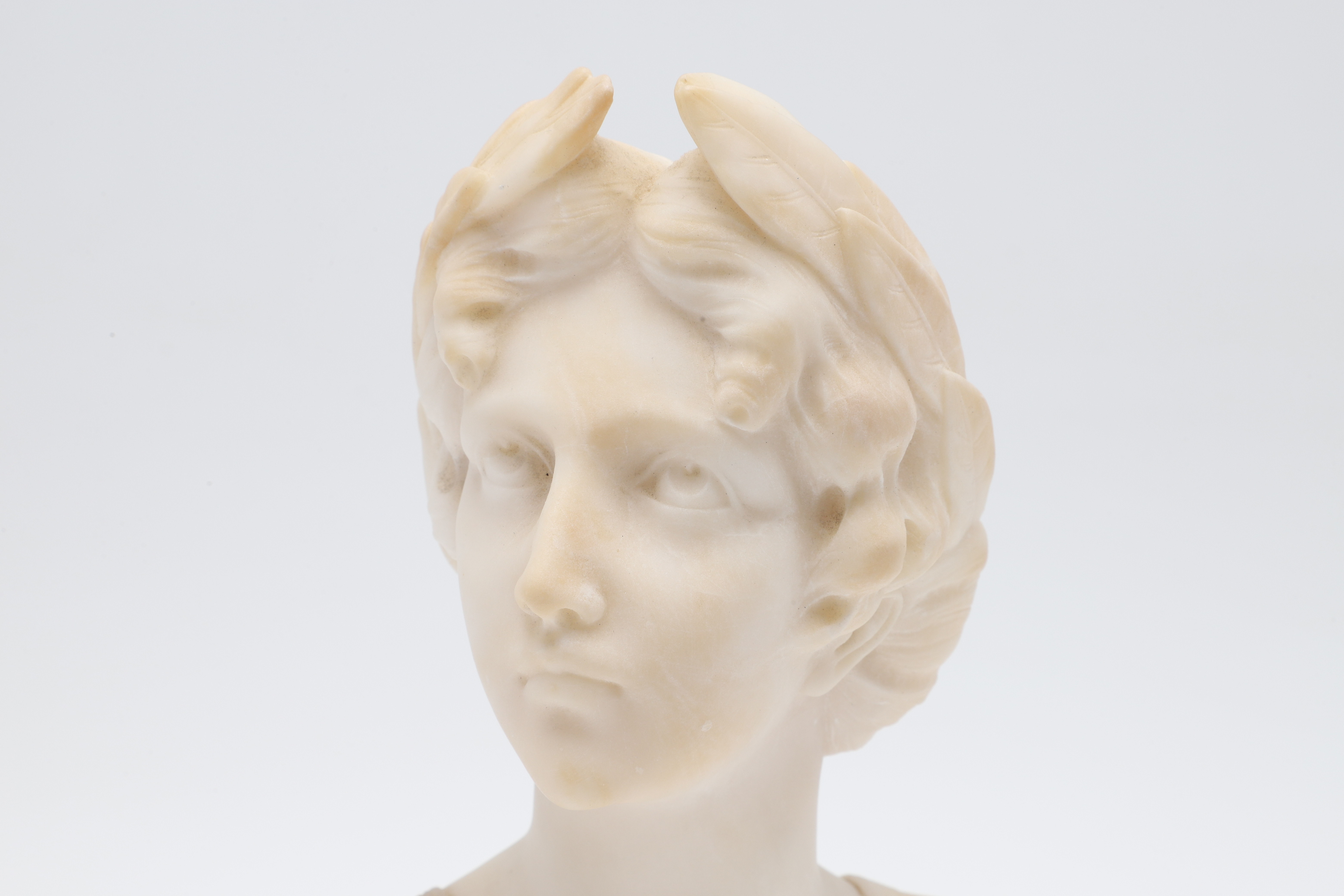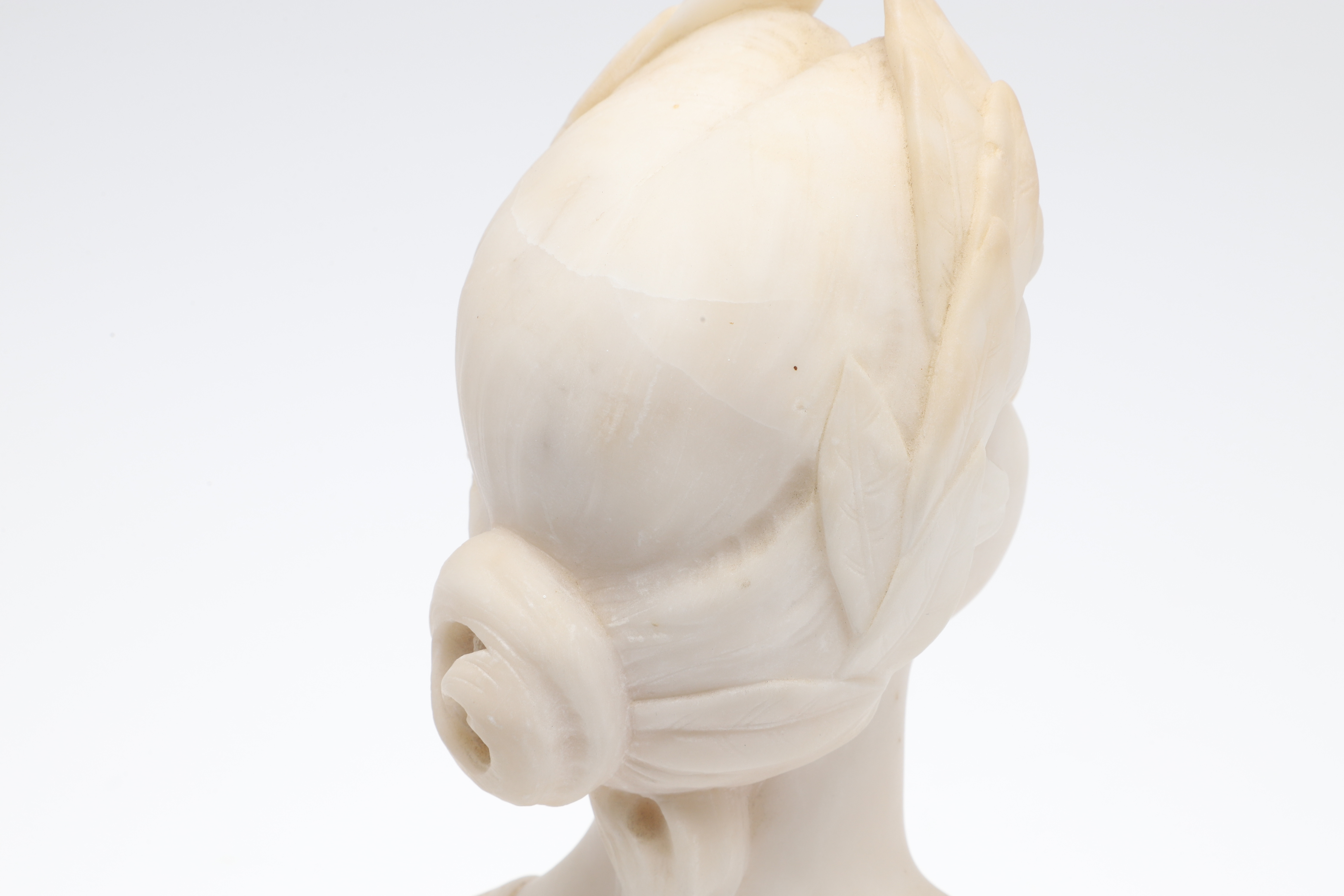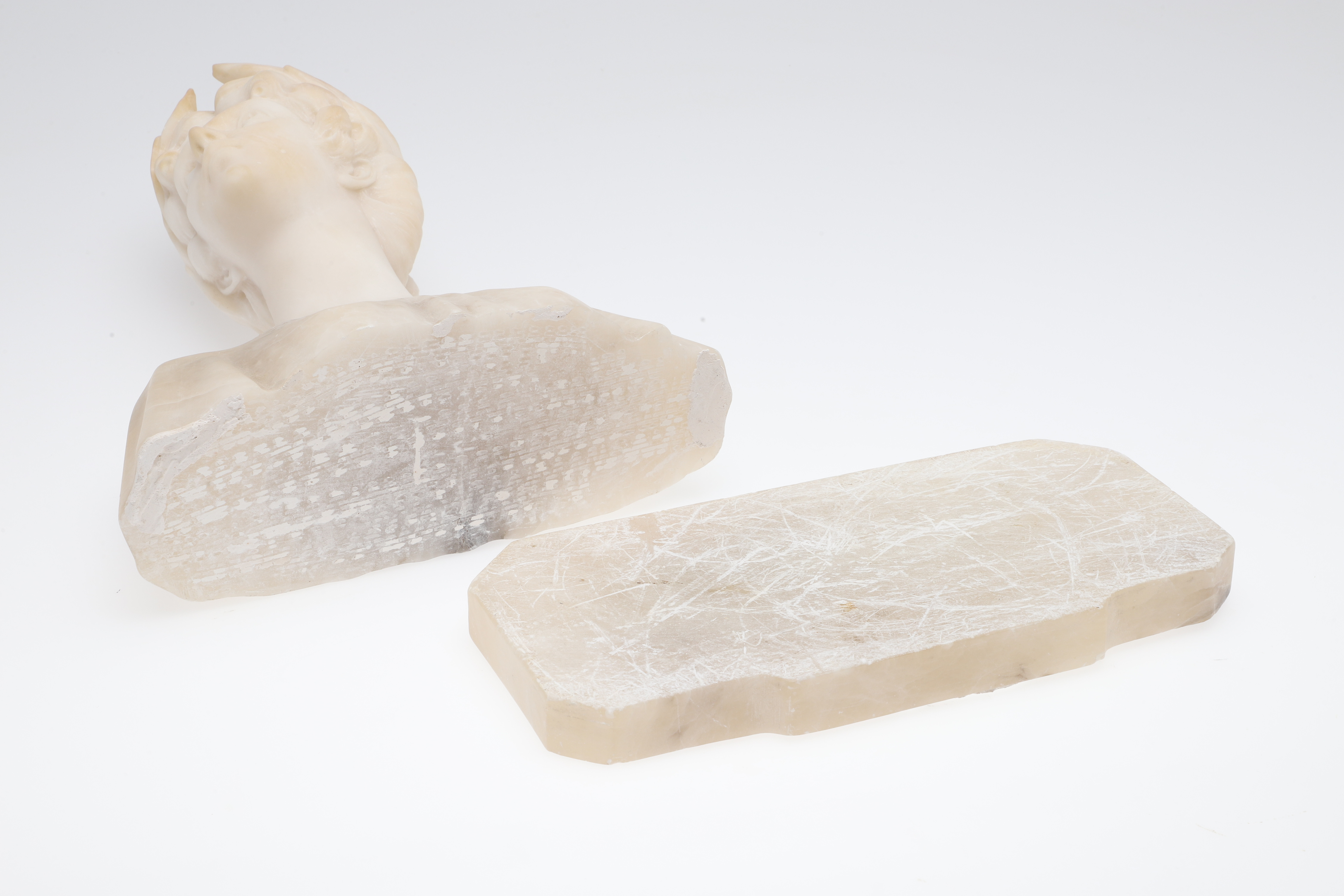 3364094. CARVED ALABASTER BUST & PLINTH.